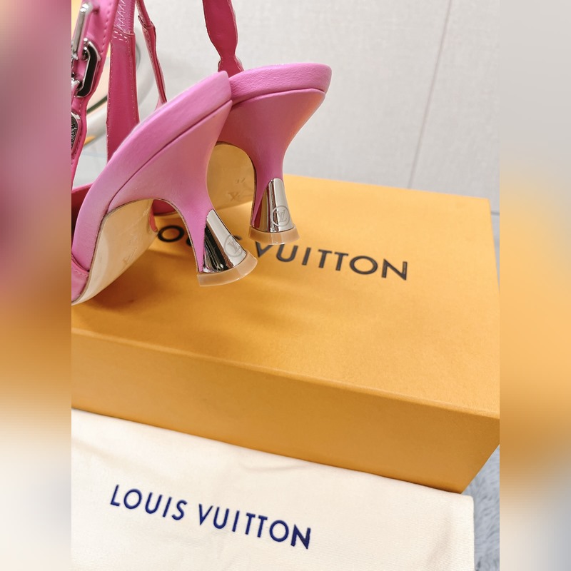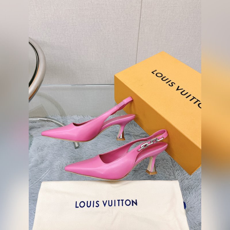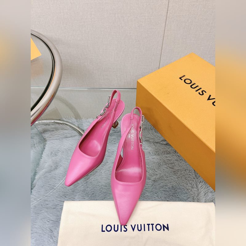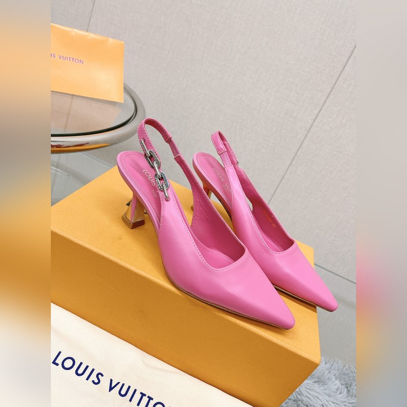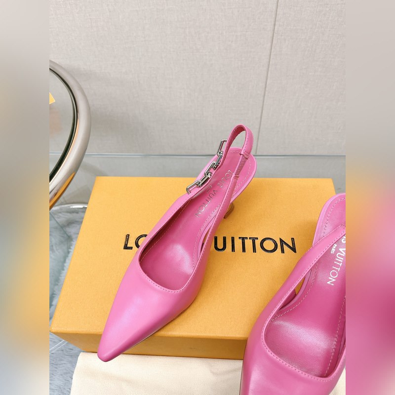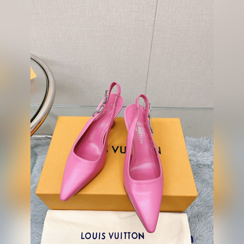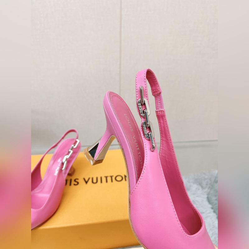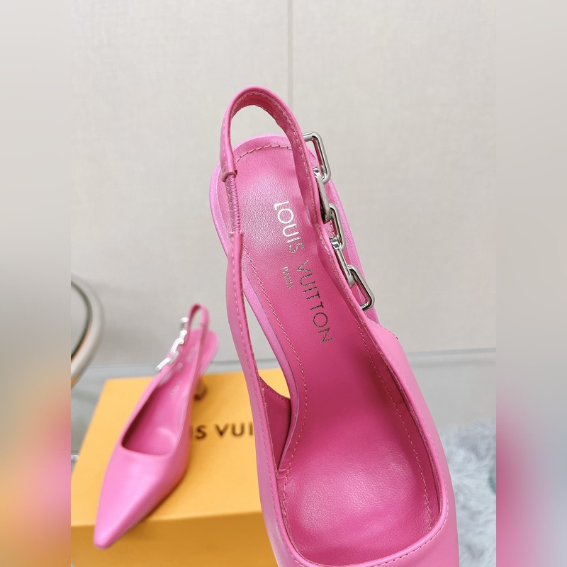 This Sparkle slingback high heel is cut out of soft cowhide leather with elegant lines. The main features are the pointed toe and high flared heel. The latter is decorated with metal inlays, and the elastic back strap is embellished with the brand’s engraved chain