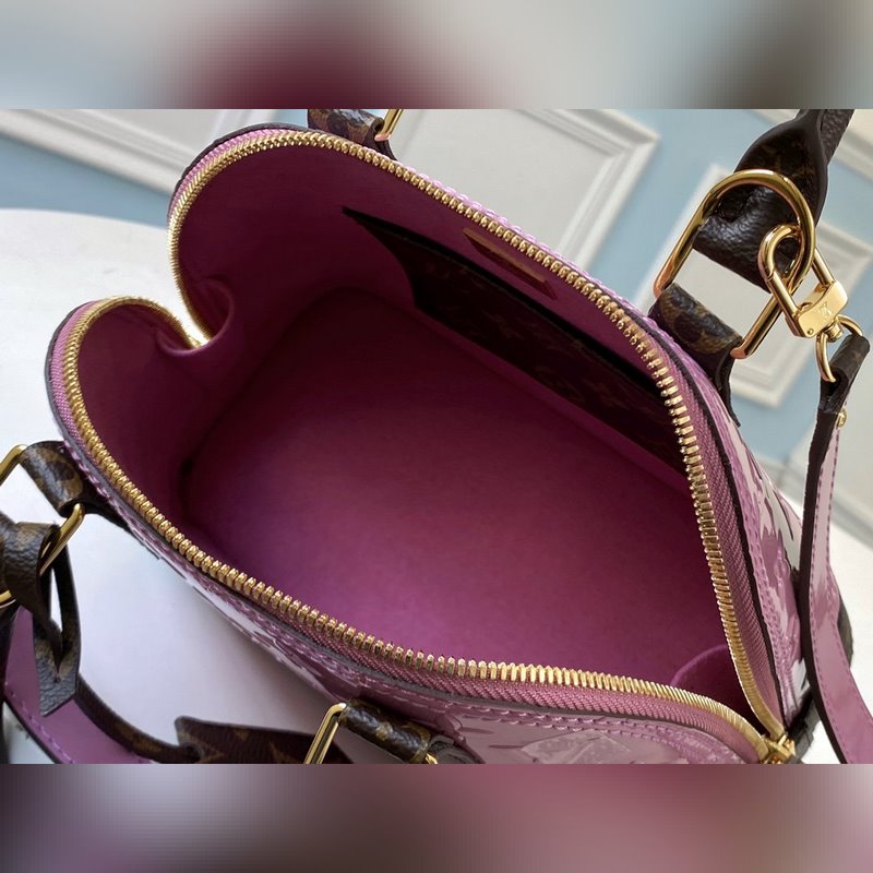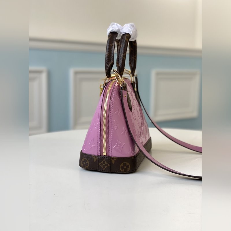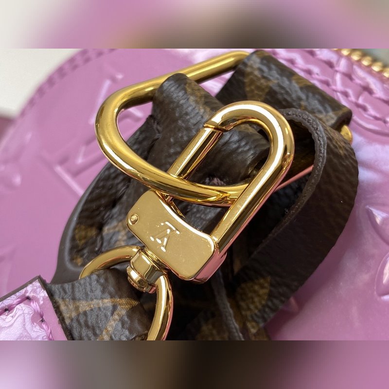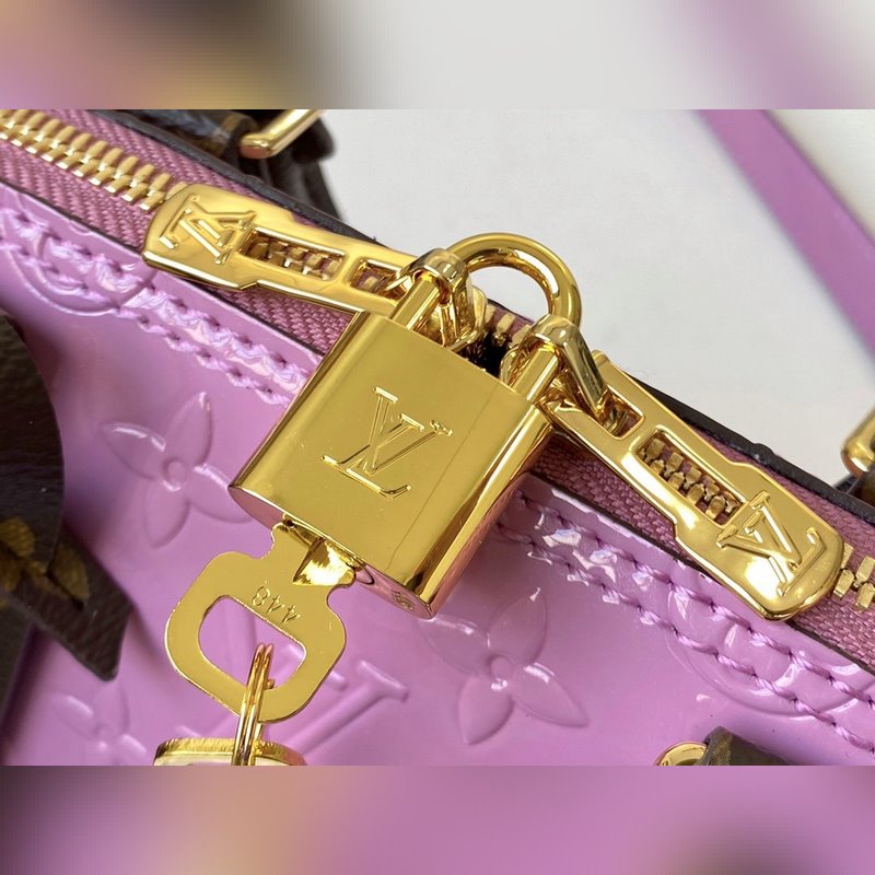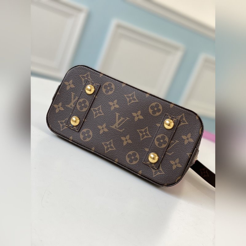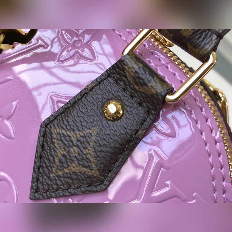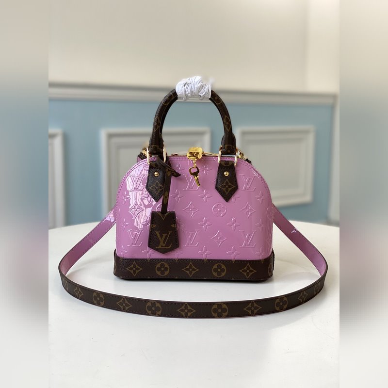 Shining with the metallic luster of Monogram Vernis leather, its Monogram embossing and Monogram canvas trim complement each other, showing a classic design that is gentle and elegant. Dimensions: 23.5 x 17.5 x 11.5 cm