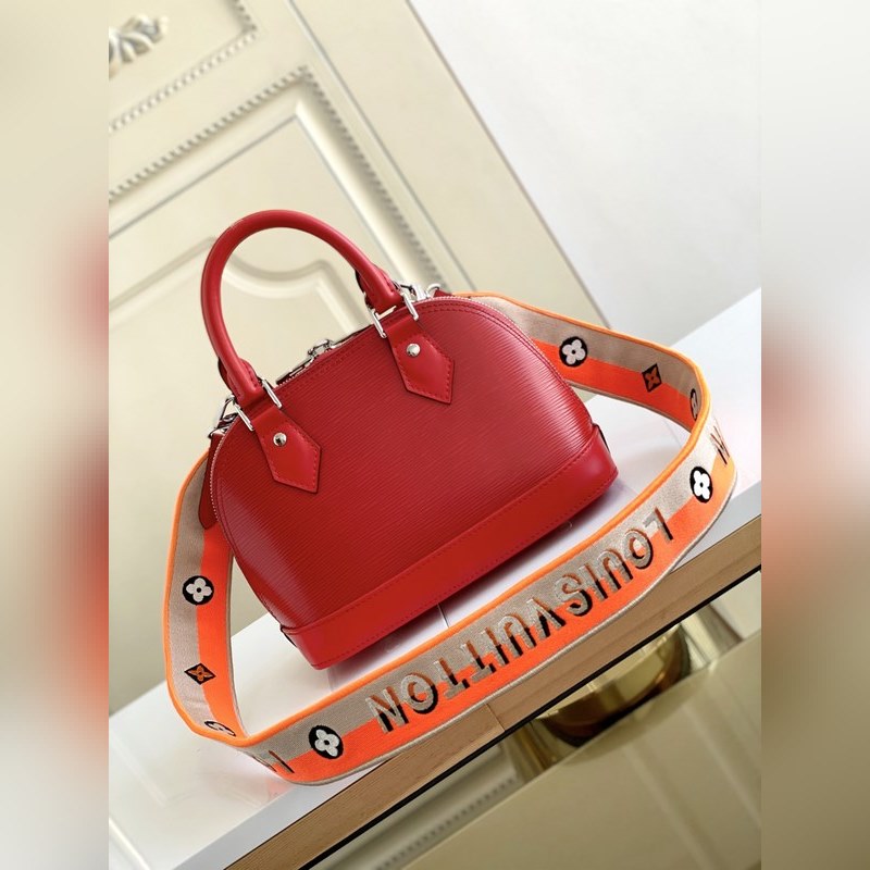 This Alma BB handbag presents one of Louis Vuitton’s most iconic designs with colorful Epi leather, and the jacquard shoulder strap is decorated with Louis Vuitton logo embroidery and Monogram flower clusters on both sides, with delicate stitching edges, to gather visual focus with dynamic innovation.