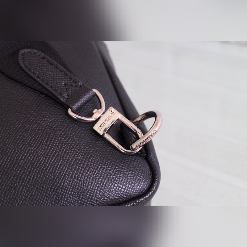 Using Taga leather to outline the iconic lines and embellish with letters, it also has a front zipper pocket and an inner patch pocket to integrate functionality and provide a trendy alternative to traditional chest bags. Adjustable shoulder straps and hooks allow for left or right carry. Size: 20x31x10CM