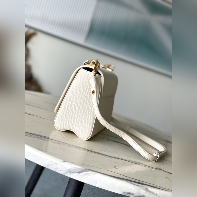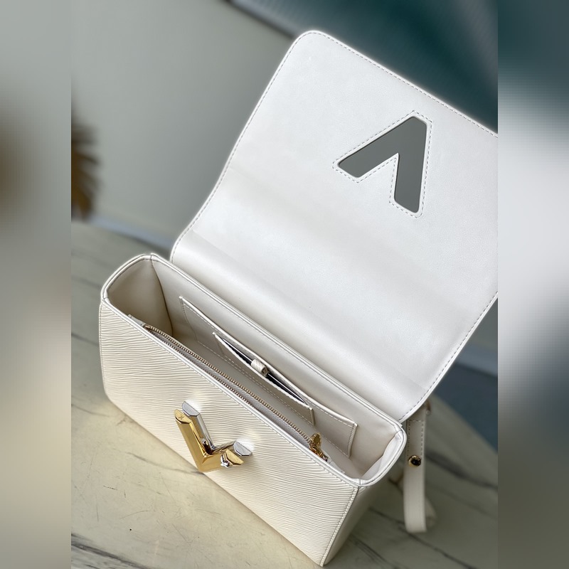 Top original M24043 White This ist MM LV Bloom handbag pays tribute to spring with a delightful new detail. The handbag is made of Ei textured leather and is decorated with a charming LVist turn lock and a decorative chain handle decorated with a delicate Monogram floral pattern. The handbag is equipped with a detachable stylish leather shoulder strap and a wide multi-pocket interior design, showing an elegant and versatile style. Dimensions: 23 x 17 x 9.5 cm (length x height x width)