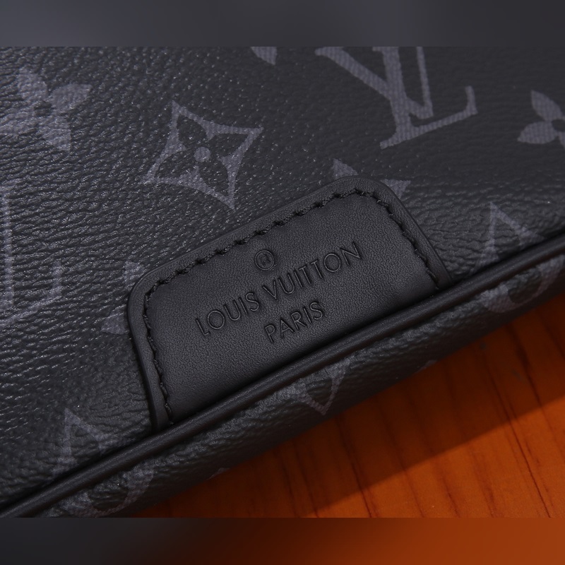 This Discovery waist bag is made of Monogram Eclipse canvas, combining casual fashion with modern functionality. The shape conforms to the ergonomic principle and is equipped with an adjustable strap. It can be looped around the waist, carried on the shoulder or casually hung on the chest. There are zipper pockets on the front and back for easy access to mobile phones, cards and keys. Monogram Eclipse coated canvas, cowhide trim, fabric lining, zipper opening and closing system, front with external pocket, and back with patch pocket