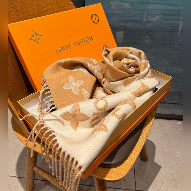 LV’s latest scarf, classic pattern redesign, a versatile style, eye-catching logo design, classic milk tea color, really beautiful, 100% sheep wool, feels great, fine yarn weaving, shiny and delicate surface, exquisite, three-line lock edge to prevent shedding, don’t miss it, specifications 30*180