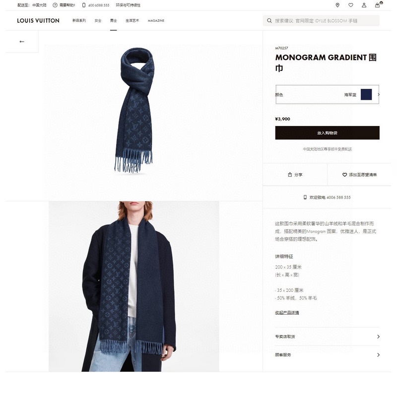 LV counter synchronized double-sided gradient pattern gradient jacquard classic design is perfect, looming LV logo, highly recommended, hurry up and miss it. Don’t go to the counter to buy it. Purchasing on behalf of others will cost 3800+. It is absolutely the same. The price is really good, the texture is very skin-friendly and soft, just like your skin. The size is not too big or too small, especially easy to match, the quality is super good. You will understand the high-end quality when you get it, and the high-end details are what you see is what you get. Heavyweight offer VI¥Customer must buy recommendation 200*35 customer supply cashmere long scarf cashmere model