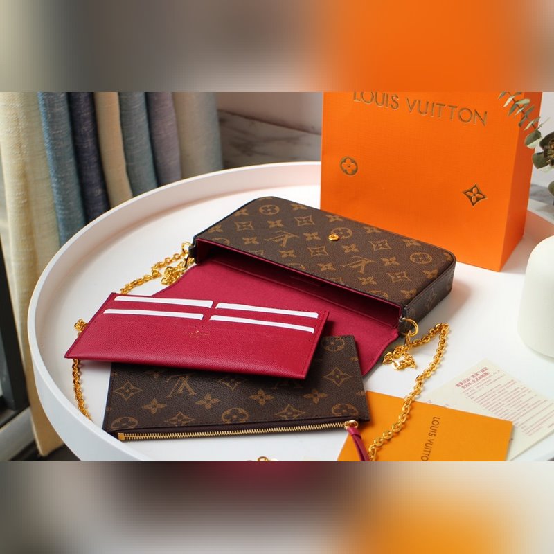 The Felicie handbag is elegant and luxurious, with two detachable pockets inside. It is a fashionable choice for carrying and organizing your daily necessities. It is not just a wallet. After removing the gold chain, it can also be used as a charming clutch or small handbag size 21X11X2CM