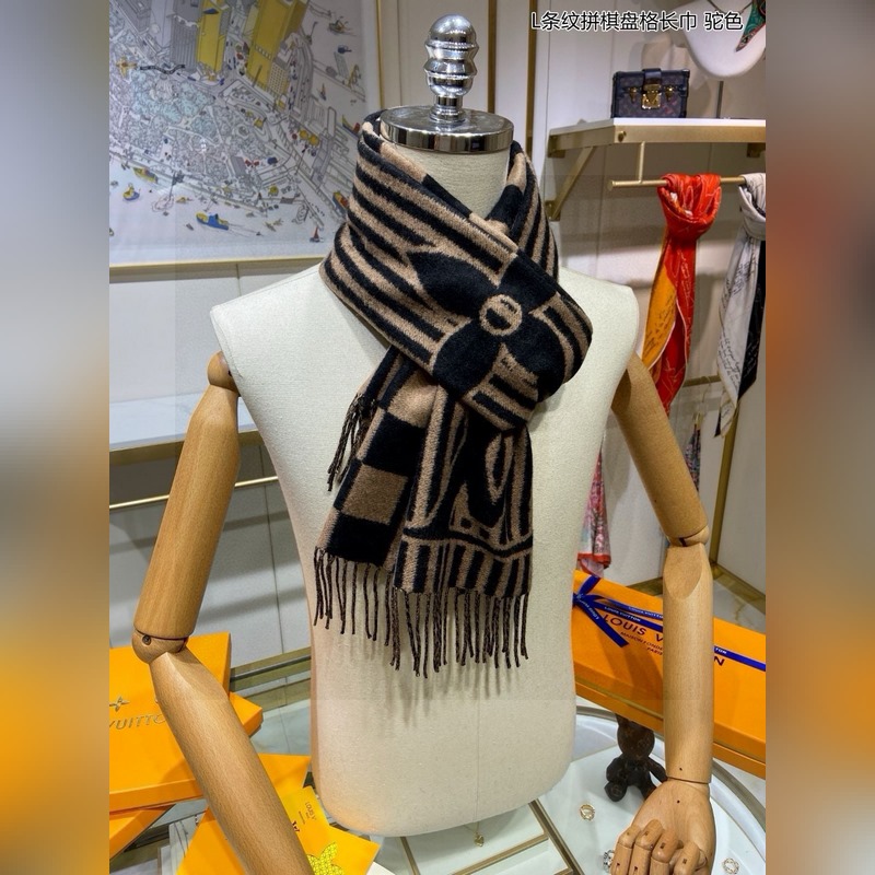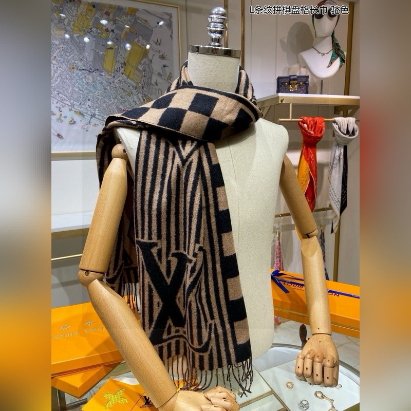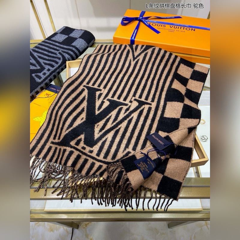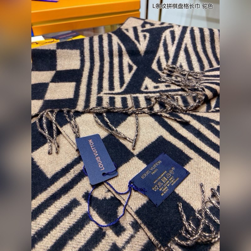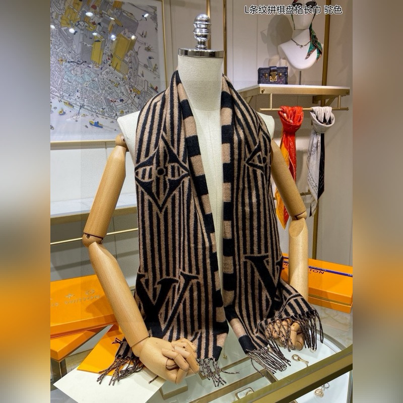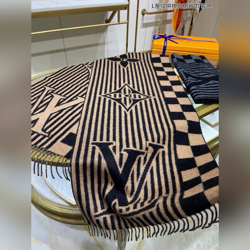 New models are available at the same time as the counters. The new L-striped checkerboard long scarf from LV is a unisex style. The LV Graphical scarf connects the classic Damier pattern and the oversized LV letters with eye-catching stripes, and is paired with rustic tassel trims. Soft cashmere creates a gorgeous texture. Highly recommended. Be quick. The price is really good. This size is not too big or too small, and it is very easy to match. The quality is super good. You will understand the high-end quality when you get it. The high-end details are what you see. A heavyweight offer. VIP customers must buy it. 100% cashmere, size: 40*179cm