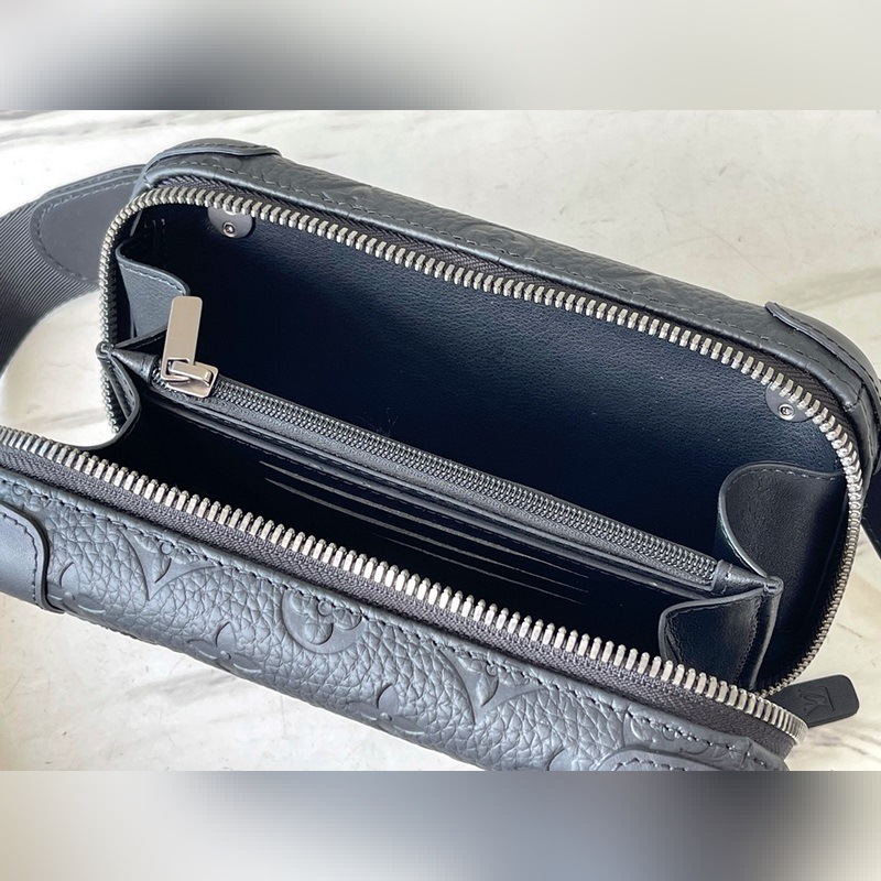 It is Taurillon cowhide with embossed Monogram pattern, and the iconic elements of the Horizon series are traced back to the safety zipper and leather reinforced corners. The compact configuration can store what you need on the go, and it comes with a detachable shoulder strap. It is suitable for daily use or travel with the Horizon trolley case. Dimensions: 21 x 12 x 6.5 cm