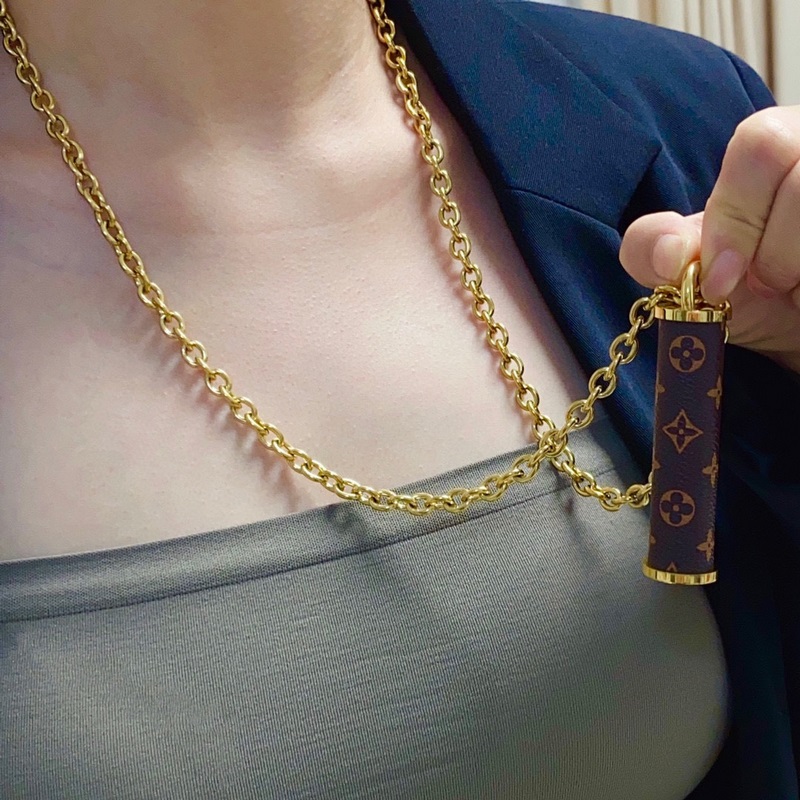 23 New LVLouis Vuitton Bucket Strip Letter Texture Sweater Chain Leather Long Necklace Early Autumn Must-Have Fashion Item♀Super good-looking and super personality when stacked, the versatile style is particularly good, the overall details are very surprising, full of design sense, not only brings out personal confidence and taste, the style is elegant and fashionable, highlighting the French elegance, plus meticulous details, making it more attractive to wear