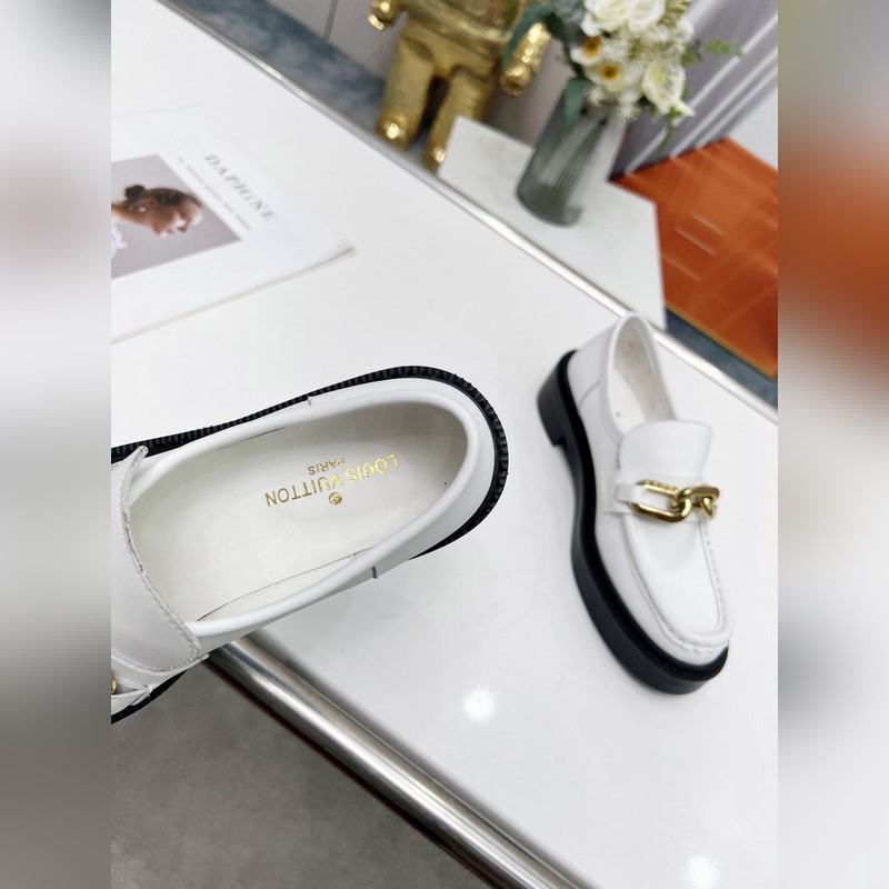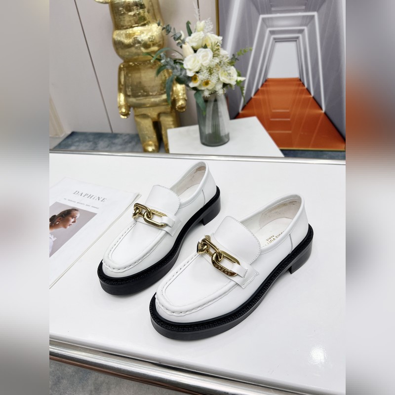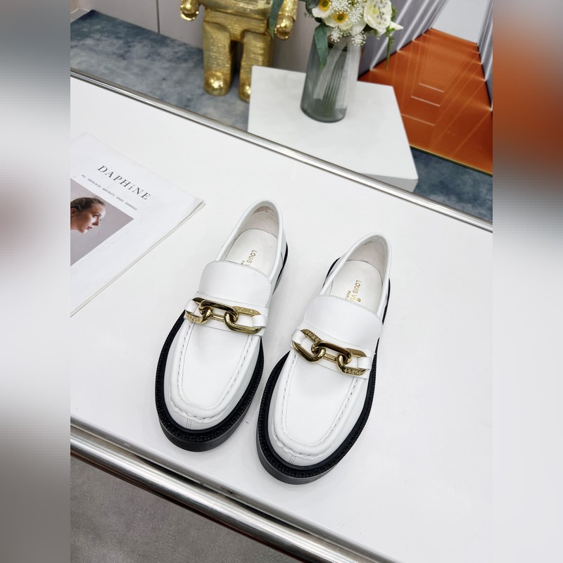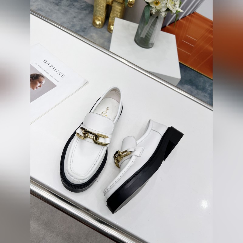 LV Louis Vuitton new leather chain loafers, fabric: leather, three colors: black: navy blue: white: size 35 to 40 (can be customized to 41. No return or exchange)