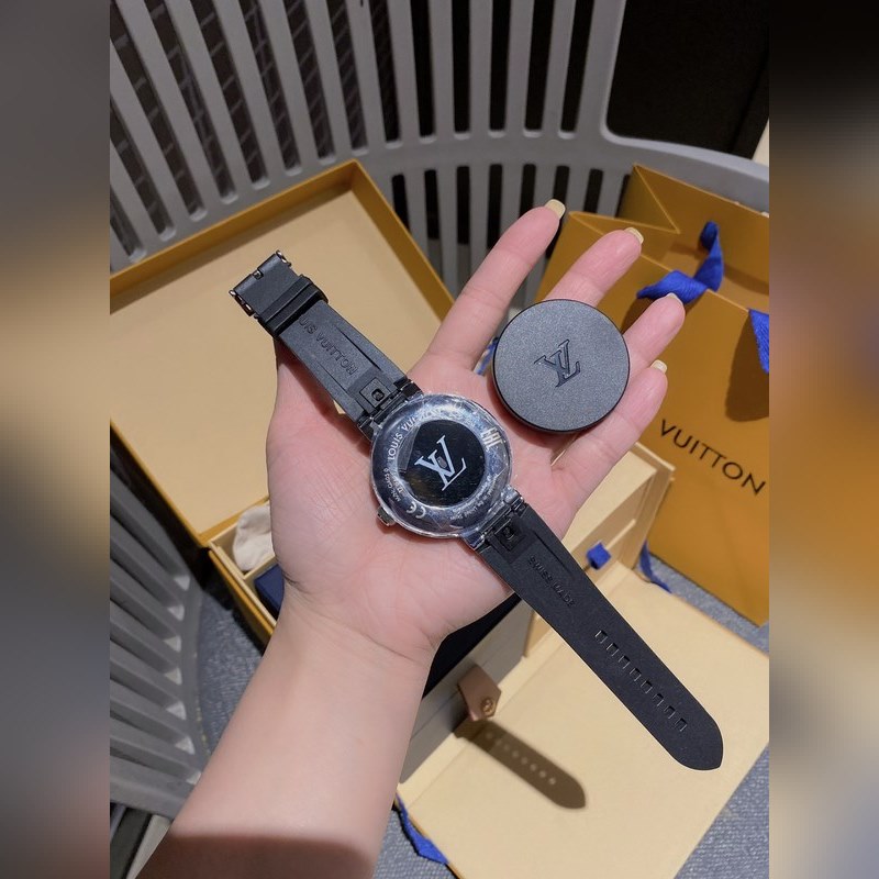 Full set of counter packaging Including instruction manual and charger The new Tambour Horizon smart watch combines Louis Vuitton’s travel spirit, exquisite craftsmanship and innovative concepts to bring a unique connected experience. It not only meets the various needs of travel and daily life, but also highlights personal style and temperament. Design Stainless steel polished case Case diameter: 42 mm Case thickness: 12.6 mm Bottom cover: black sapphire glass, engraved with steel-plated LV logo Technical features Rotatable functional crown 1.2-inch round AMOLED full touch screen, resolution 390 x 390