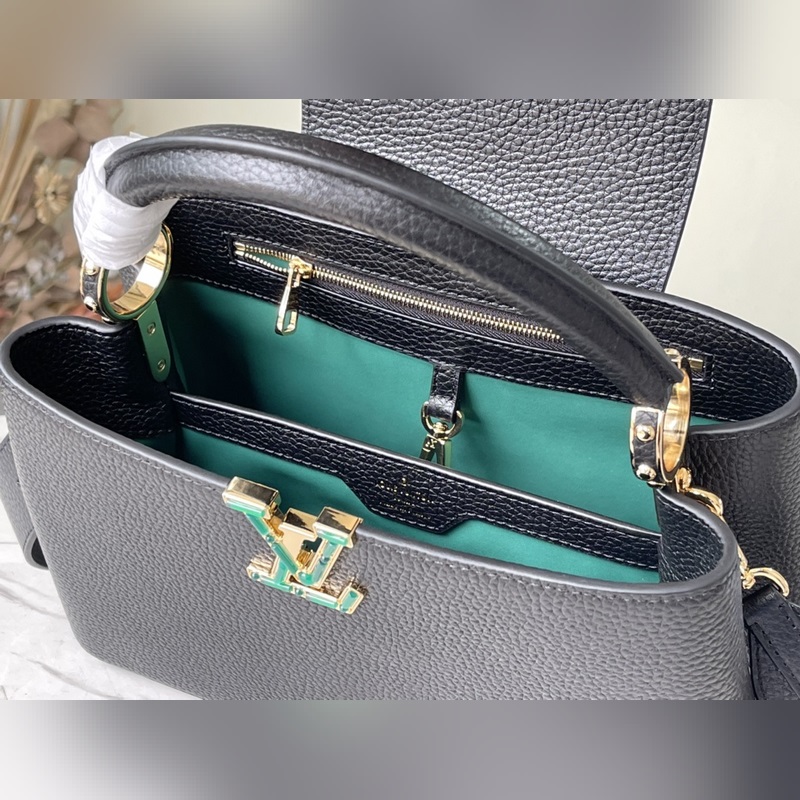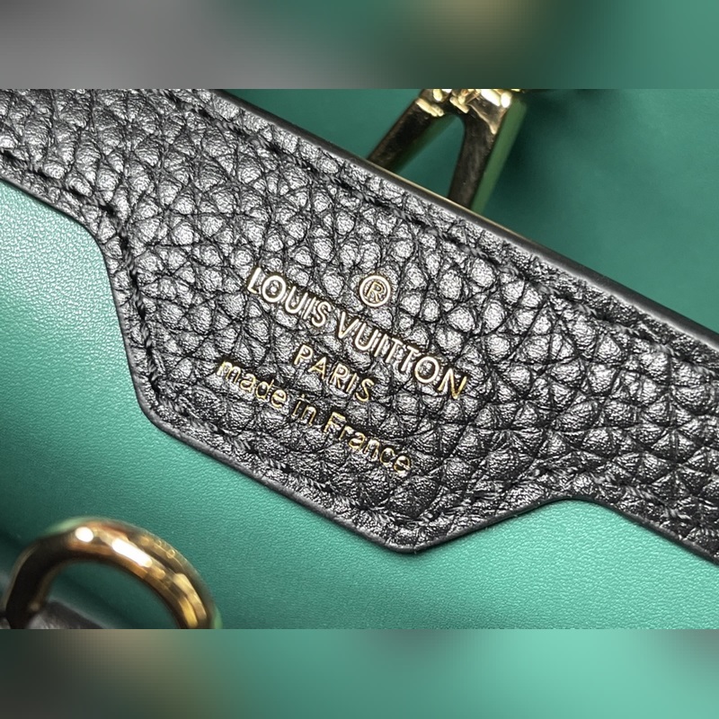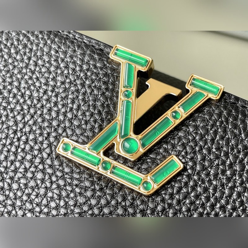 The jewel-like logo shines like malachite, injecting elegance into the classic design. The wide leather shoulder strap is suitable for shoulder or crossbody, and it is flexible to shuttle between day and night occasions. Dimensions: 21 x 14 x 8 cm