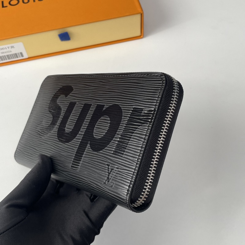 Overseas original model number: m60017 Black water ripple supreme exclusive real shot LV and Supreme’s most anticipated joint venture. Supreme is an American street fashion brand founded by James Jebbia in 1994, focusing on skateboarding Hip-hop culture. LV water ripple Zippy wallet feels excellent and durable. It is made of top-grade cowhide material and is ten times more vibrant and charming. Size: 19×10×2cm