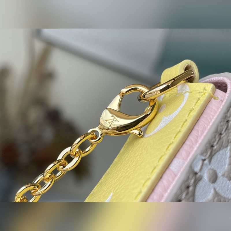 From the capsule collection, it is a leather bag with various colors. The flap is equipped with a detachable zipper pocket and a detachable patch pocket. The chain can be used to switch between hand-carrying, shoulder-carrying and cross-body. Dimensions: 21 x 12 x 3 cm