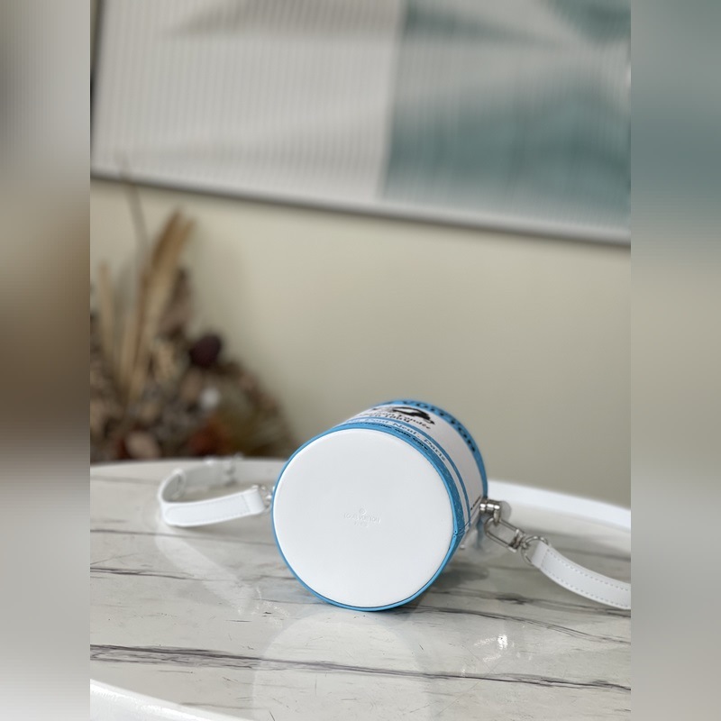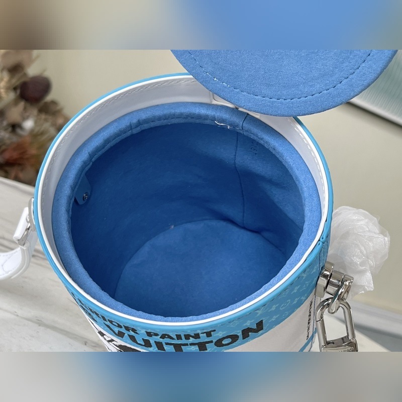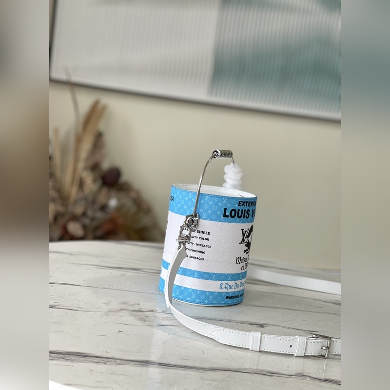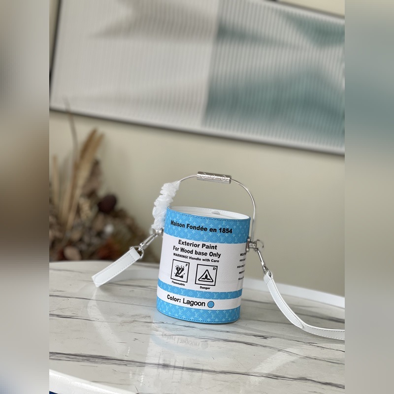 Model: M81597 Blue The bag has a metal handle that mimics the shape of a paint bucket