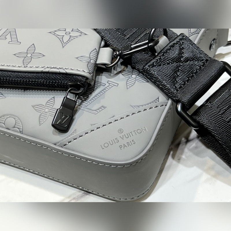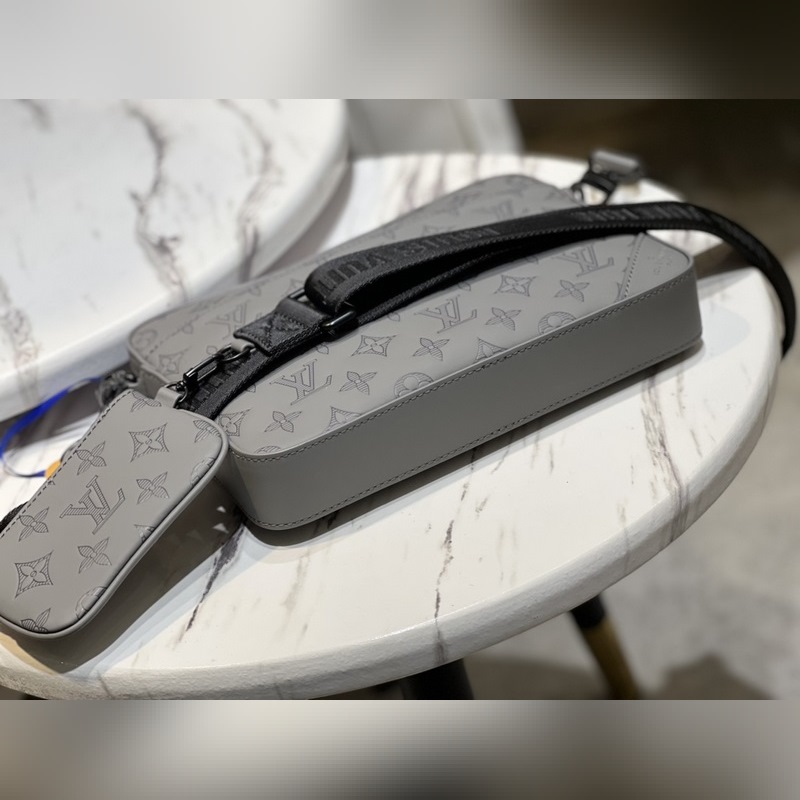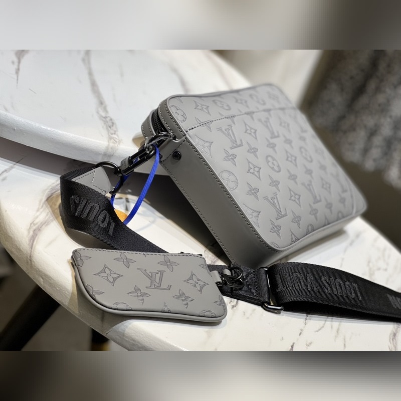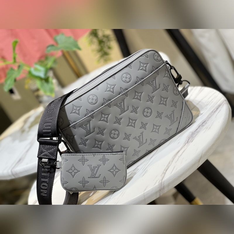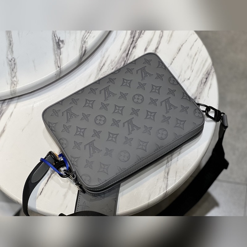 LV model number M46104 gray messenger bag releases the modern innovation of Monogram Shadow leather