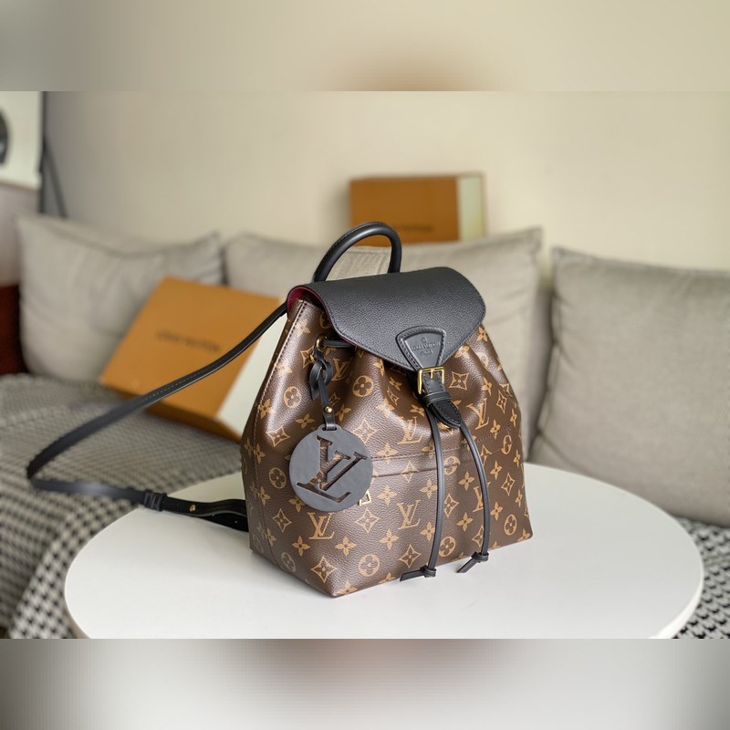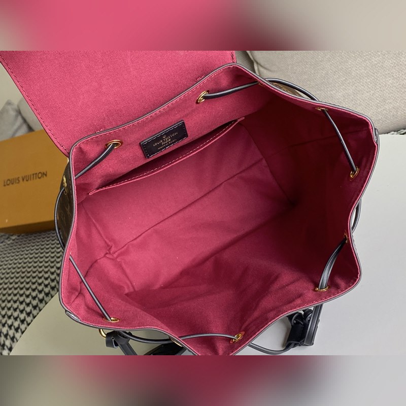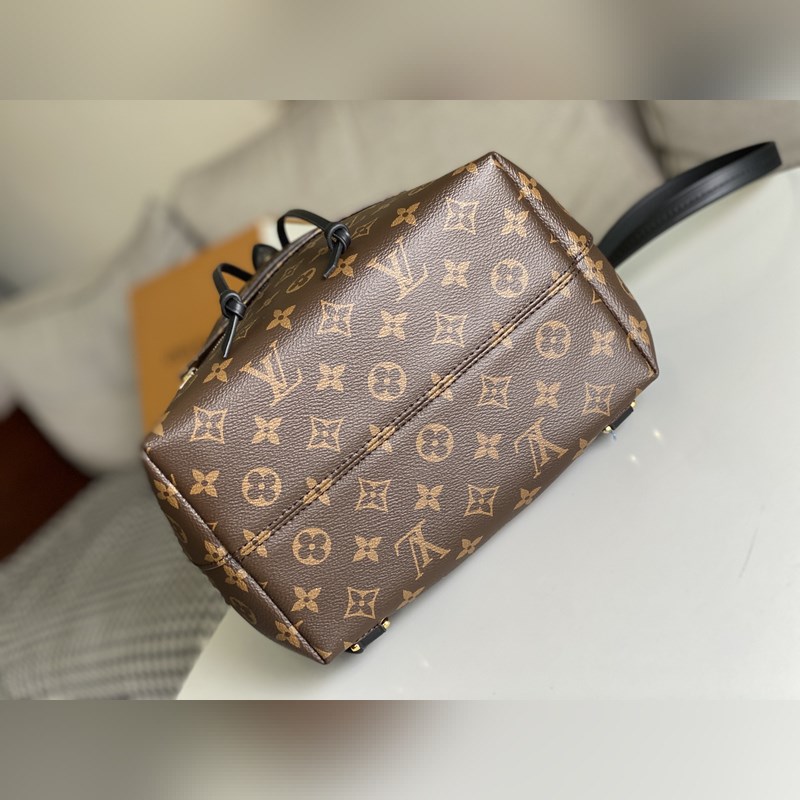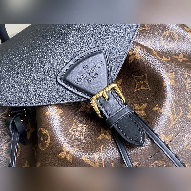 The new Montsouris small backpack is made of Monogram canvas and cowhide, with buckles and leather drawstrings from the brand archives. Ample interior space and zippered outer pockets add functionality, and the top handle and detachable and adjustable leather shoulder strap enable a variety of carrying methods.