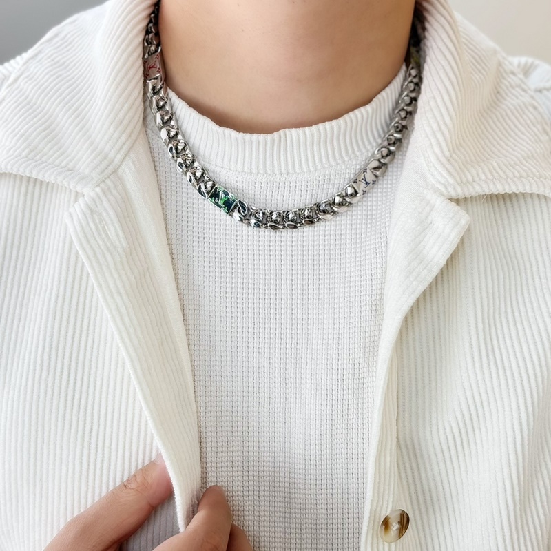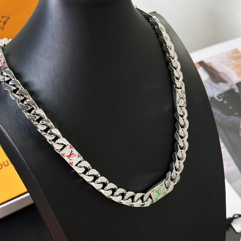 LV Mosaic necklace links Tied Up and Cuban links together, with colorful enamel [letters and Monogram patterns to express elegance and interest, which can inject trendy style into men’s wardrobe. Bracelets and rings are also available in the series