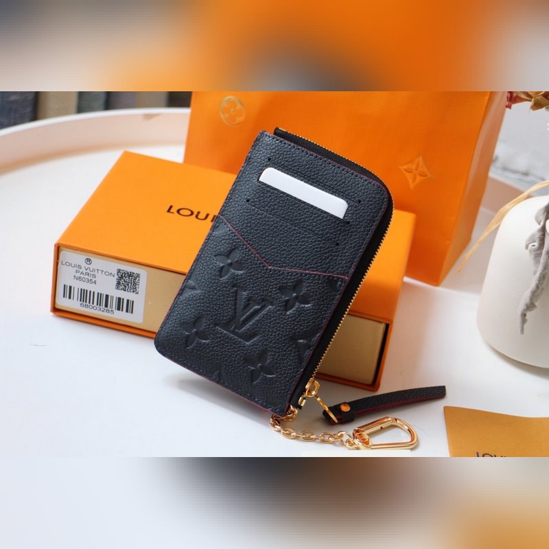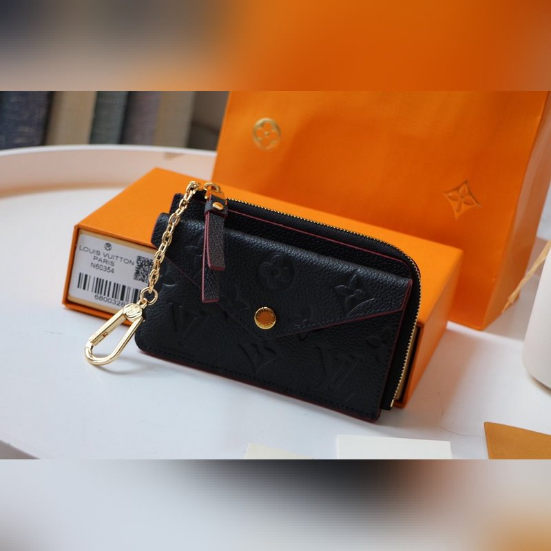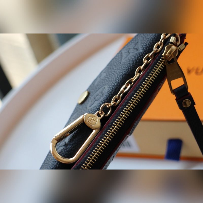 Made from Louis Vuitton’s classic canvas, it features a colorful, scratch-resistant leather shoulder strap and a gold snap. It’s small enough to fit easily into a small handbag, clutch or pocket, and has plenty of interior space to safely store coins and credit cards.