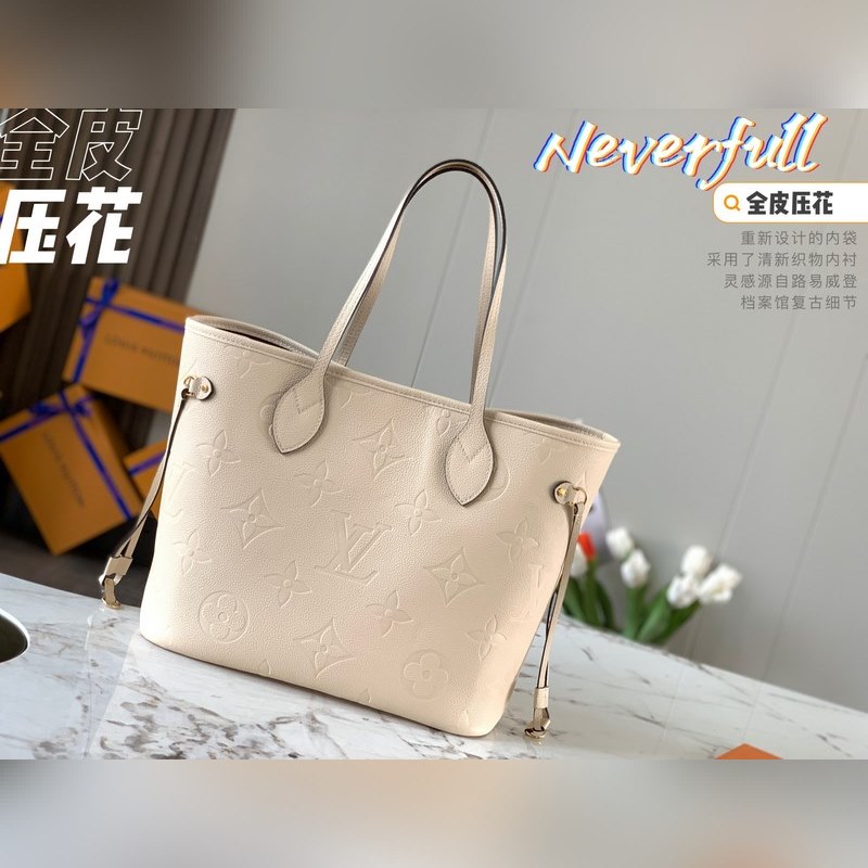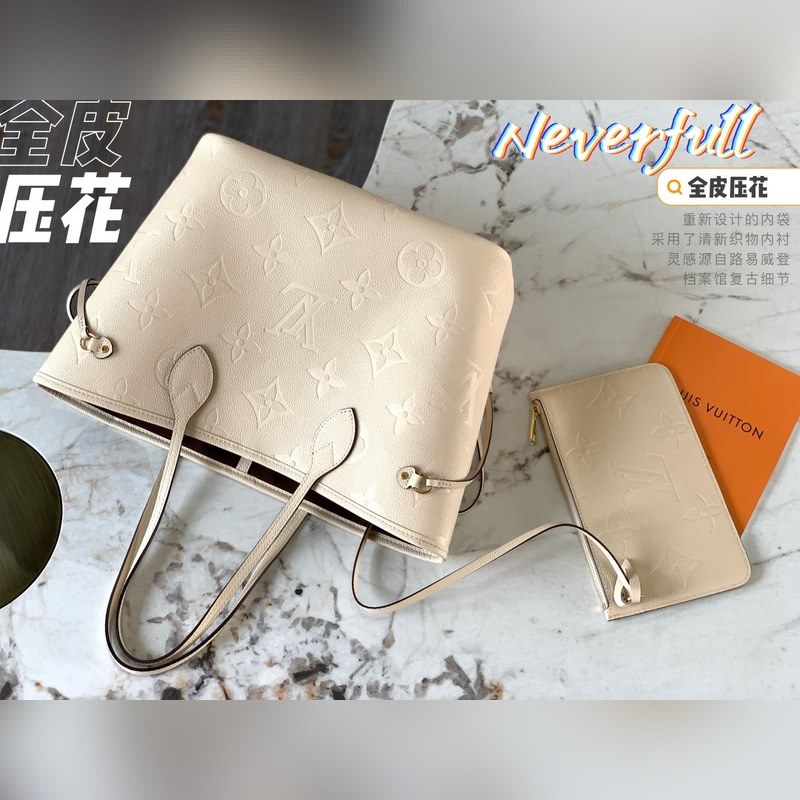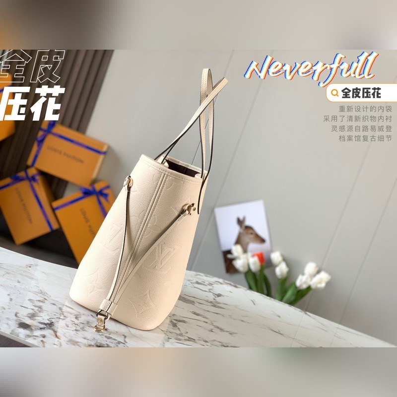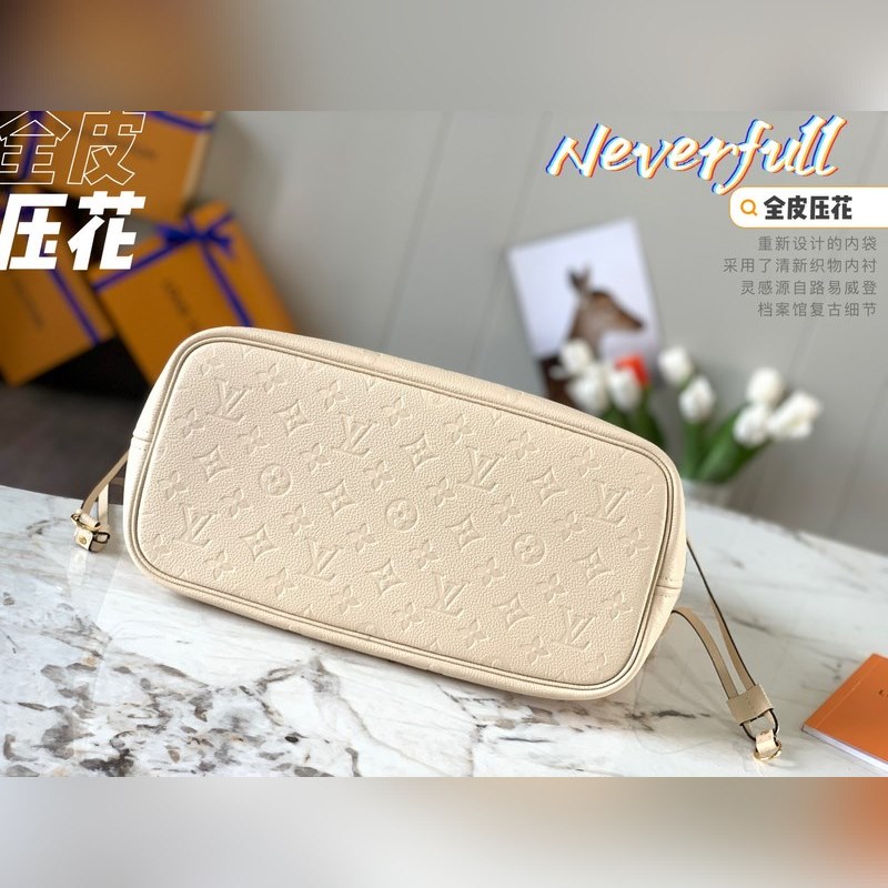LV Neverfull Medium Handbag Model M45684 Creamy White Embossed