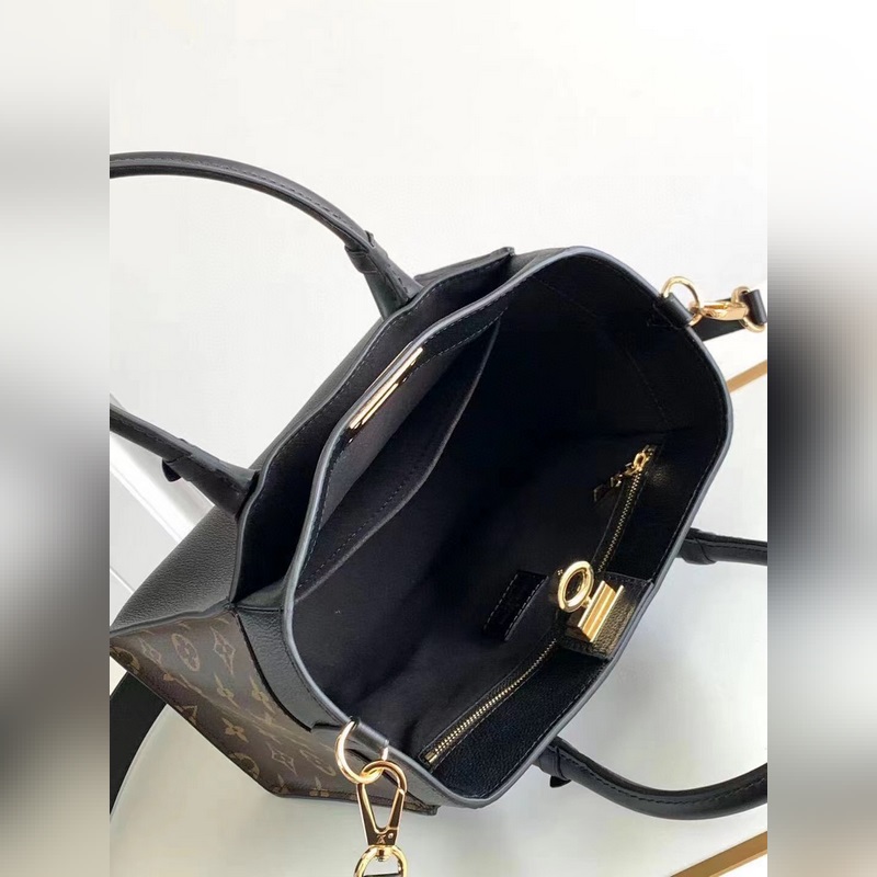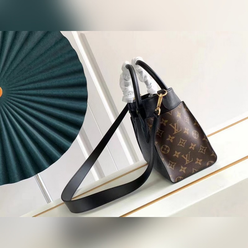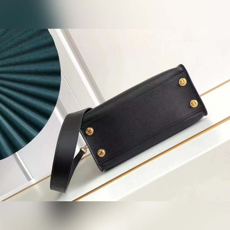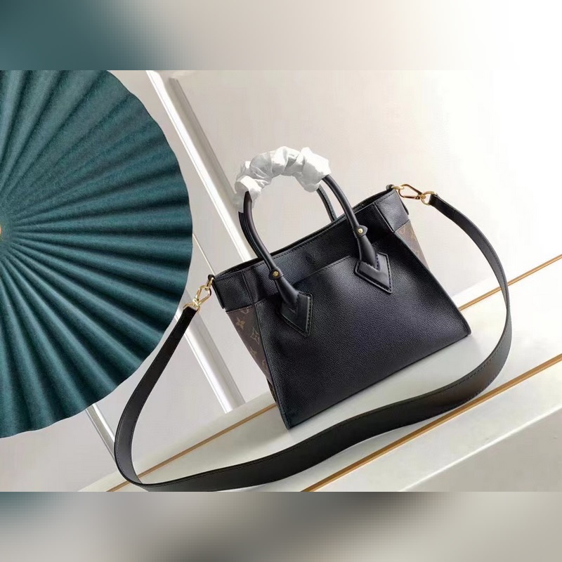 This On My Side small handbag combines soft calfskin with classic Monogram canvas side lining, and the old flower black leather bat bag has a detachable wide shoulder strap for shoulder and crossbody experience, and the top handle adds the option of hand or elbow. The large outer pocket is convenient for taking and putting items. Size: 25 x 20 x 12cm (with gift box invoice customs sticker)