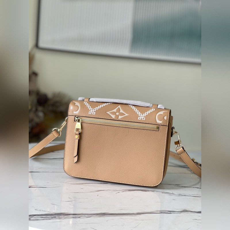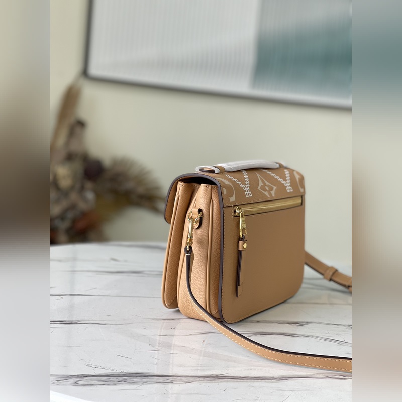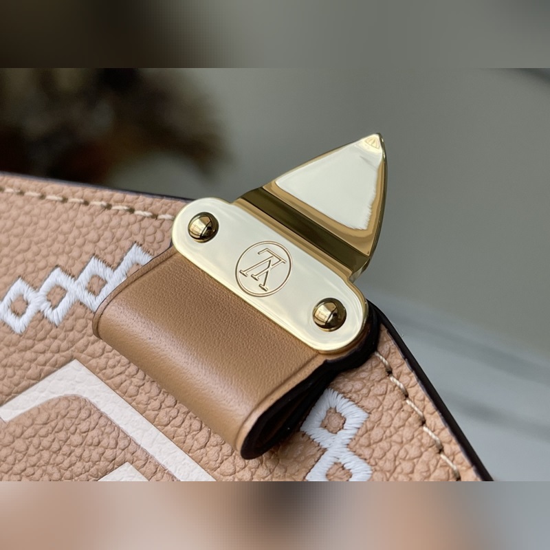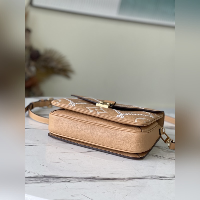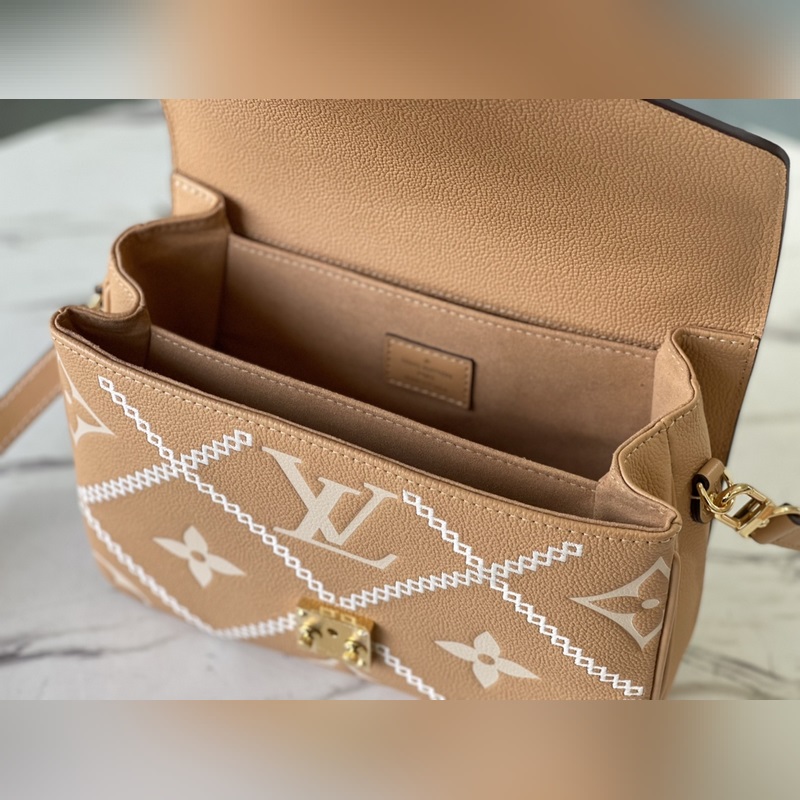 Spring 2022 Pochette Métis Bag features Monogram Empreinte leather with shiny embroidery, showcasing the House’s savoir-faire and the quilted interior design of its traditional trunks. The top handle and removable shoulder strap allow for multiple carry options. Dimensions: 25 x 19 x 7 cm