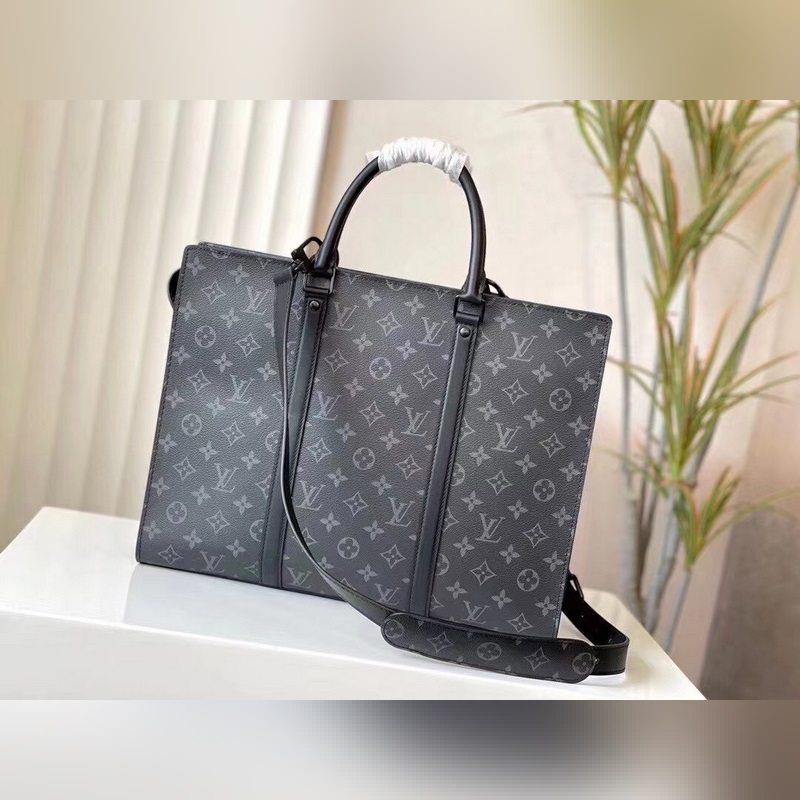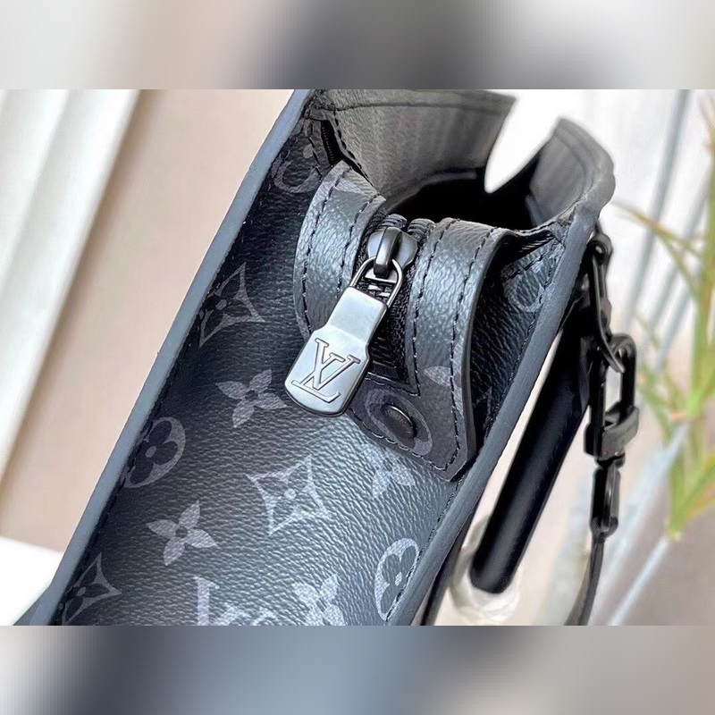 The Sac Plat Horizontal Zippé briefcase is made of Monogram Eclipse canvas and leather, with black flowers and black leather and black vertical stripes in the middle. It is a men’s briefcase, shoulder bag, and handbag. The embossed LV letters and the Monogram brand name pay tribute to the brand heritage. The neat lines write a new chapter of business and leisure, and the leather handle makes it comfortable to carry.