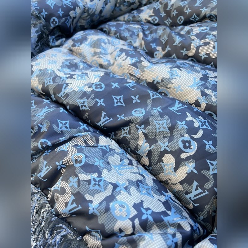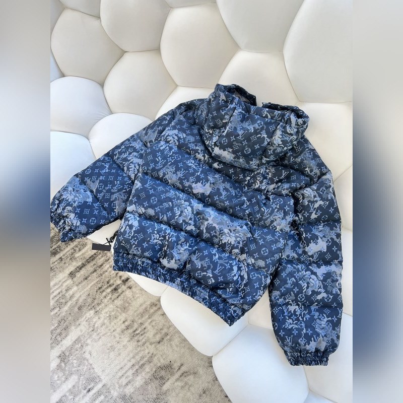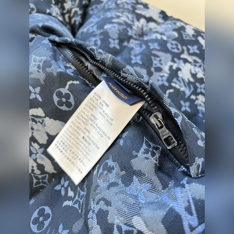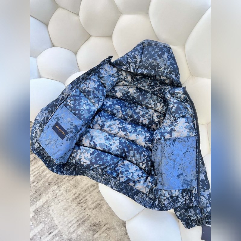 LV This hooded down jacket is available for both men and women. The Monogram Tapestry pattern of the autumn and winter series is transformed into a jacquard pattern, and elastic design is added to the cuffs and waist to release a sporty style. The side pockets are closed by zippers, and the central zipper is equipped with a T-chain zipper pull. Filled with 90% white duck down, the jacquard weave craftsmanship is super heavy. The fabric alone took three months to customize. The hardware accessories are all top-notch. The overall style is straight and wide. It is a rare down jacket with style and texture. Sizes S-M-L-XL