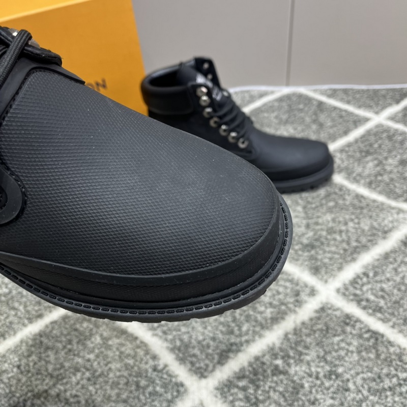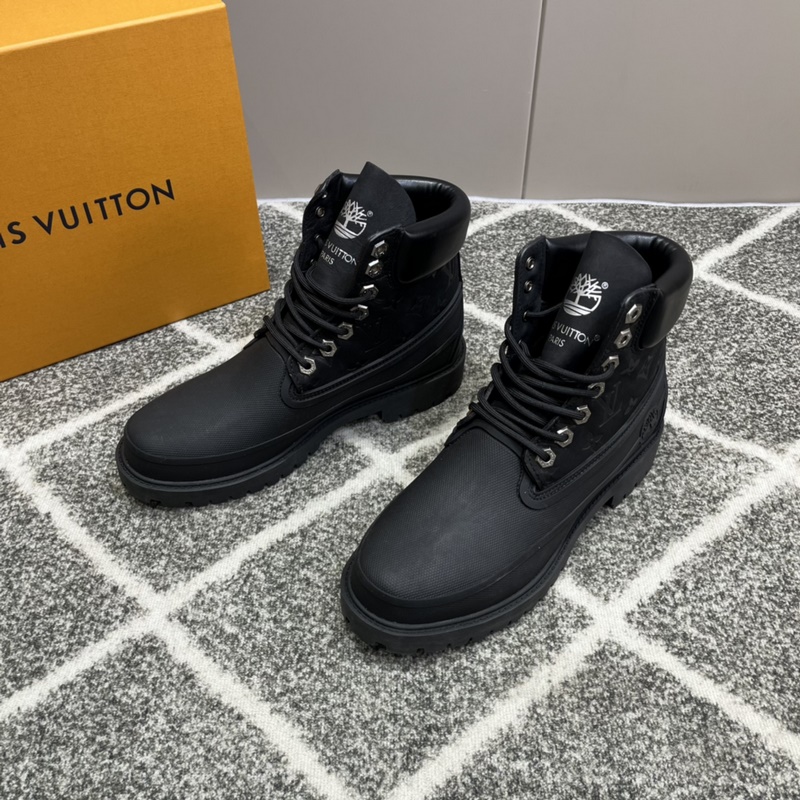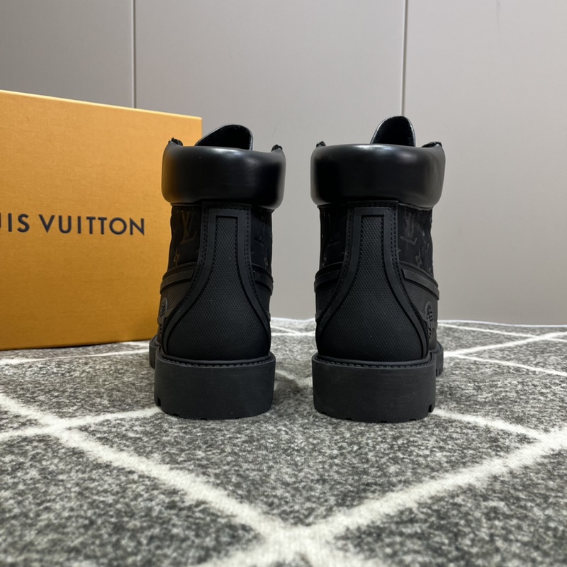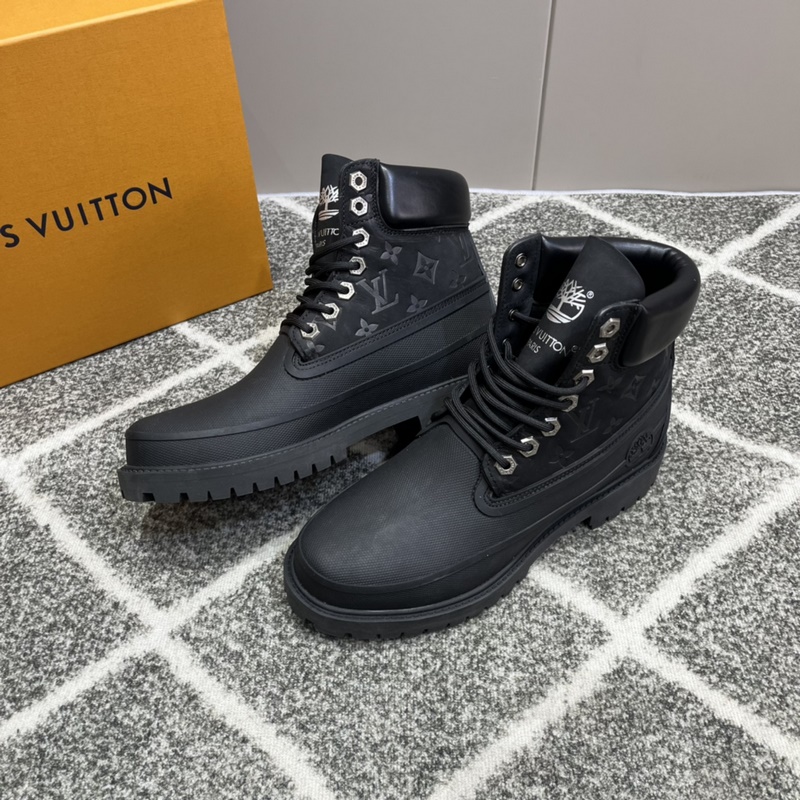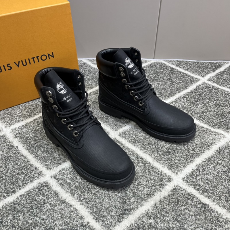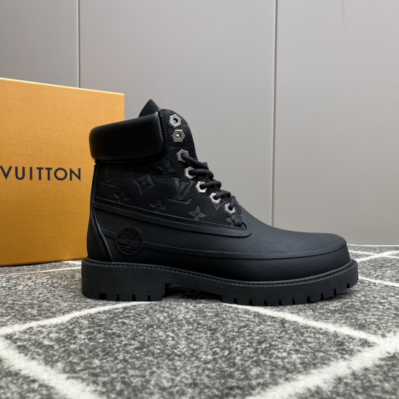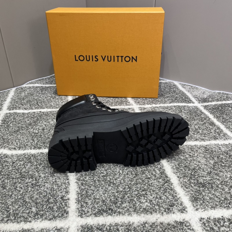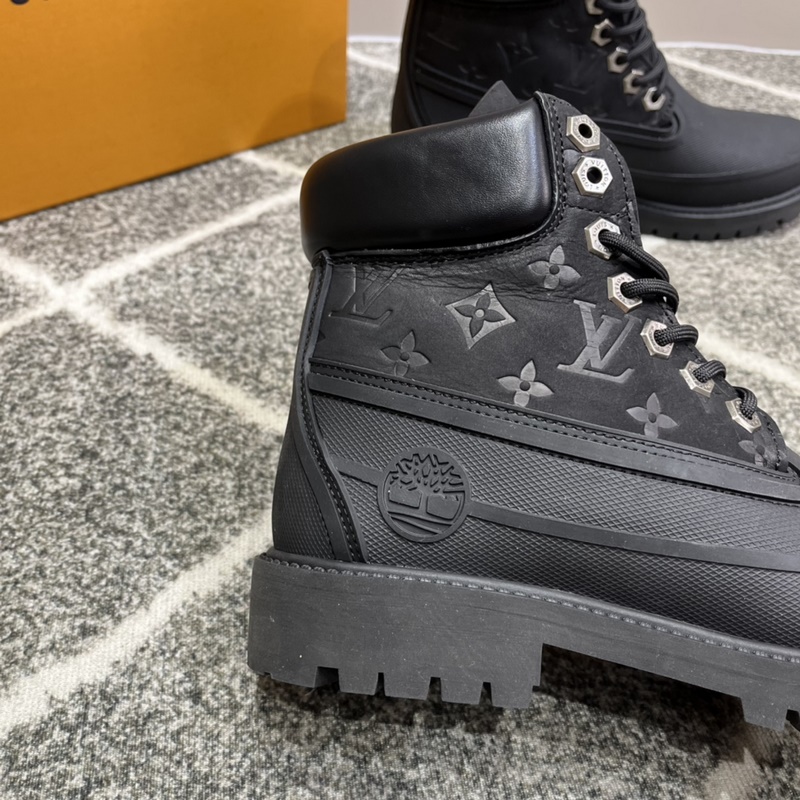 High-cut LV x Timberland co-branded boots with yellow floral pattern, ankle boots, short boots