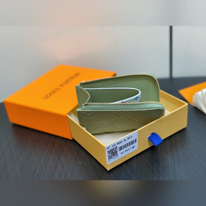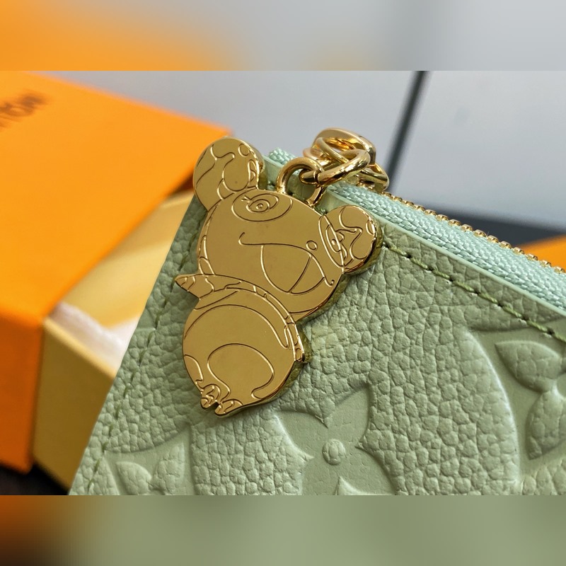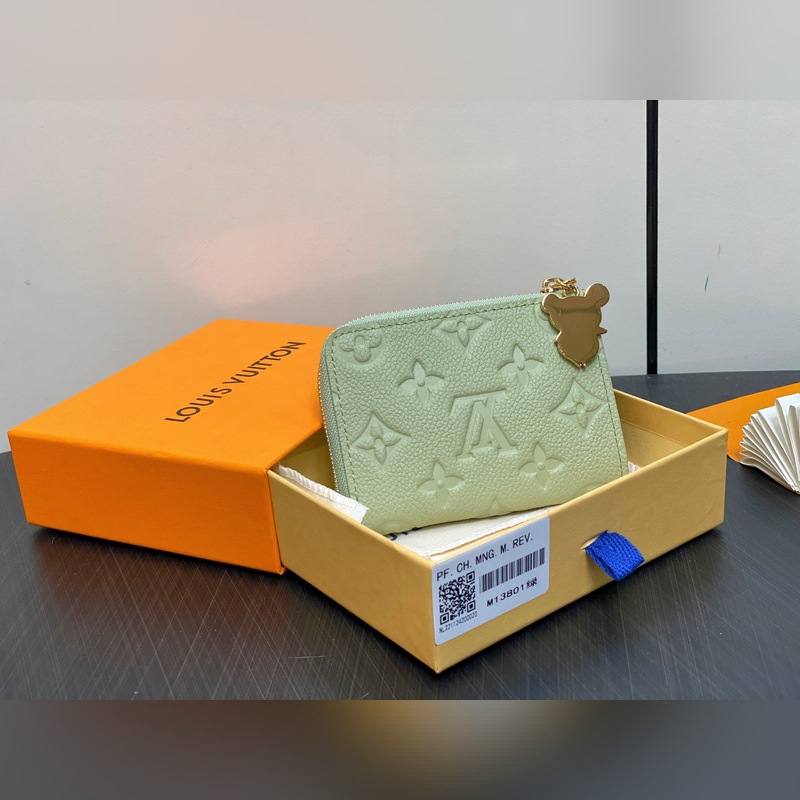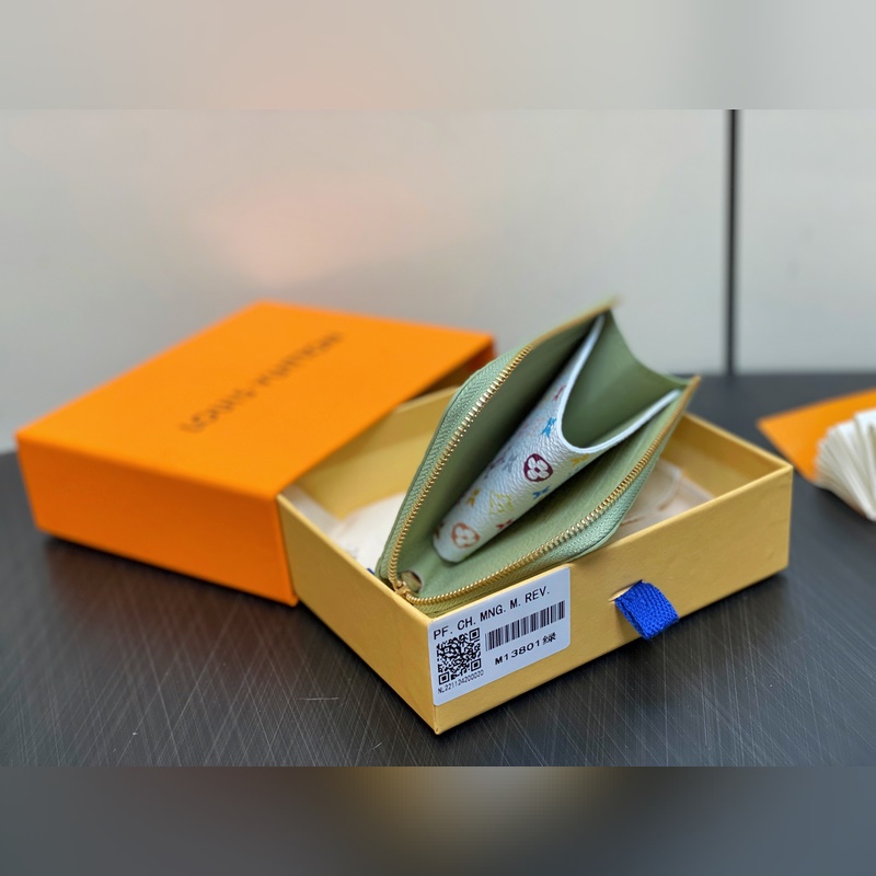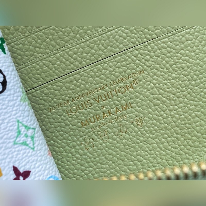 Taiwan M13801 Green and White Coin Wallet LV x TM Portfolio Noah Compact Wallet The compact wallet “LV × TM Wallet Noah Compact” is characterized by a square shape. When the smooth L-shaped zipper is opened, a pocket for folding and storing banknotes and 6 card slots appear. As a reprint of the “Louis Vuitton × Takashi Murakami” series, the Monogram Ampland leather that symbolizes the Maison is finished in a bold blue tone, and the inside is added with a multi-colored Monogram canvas as an accent. The panda zipper handle that adds a touch of playfulness at the opening is also attractive. 11 x 8.5 x 1.5 cm.