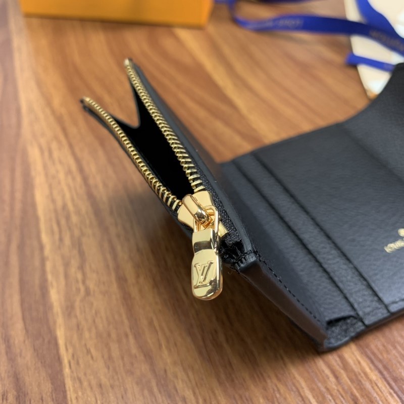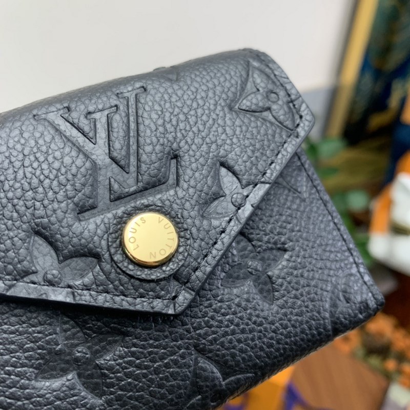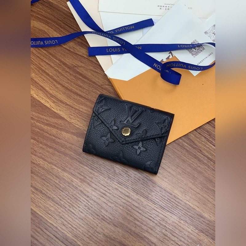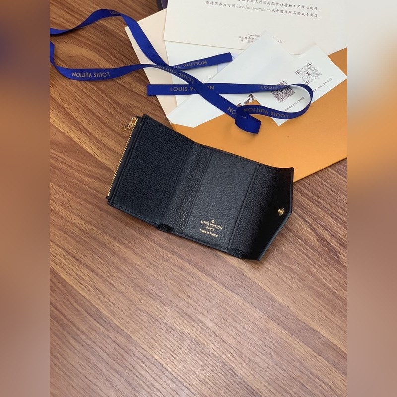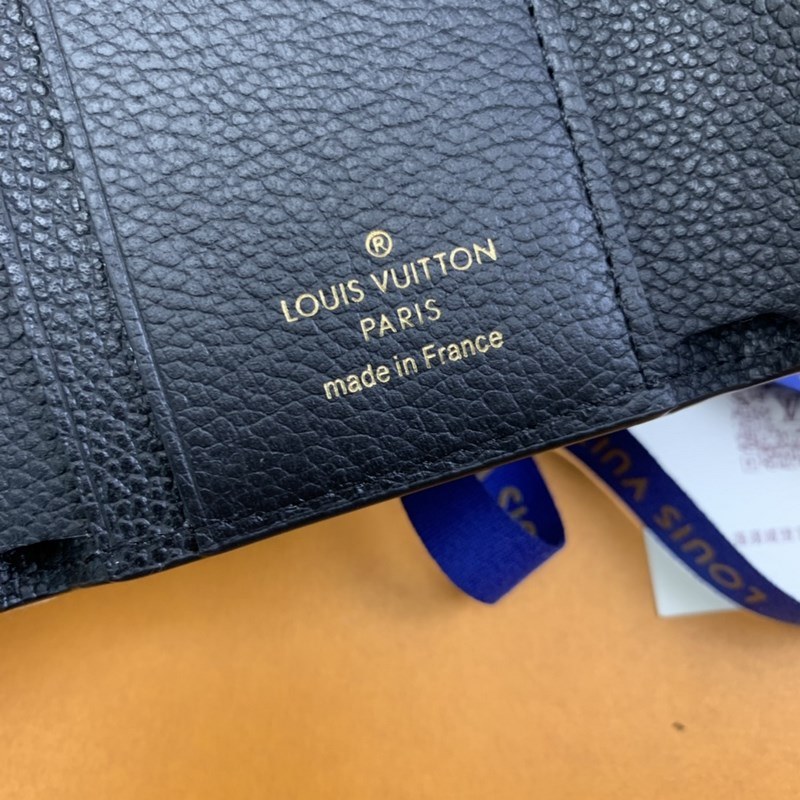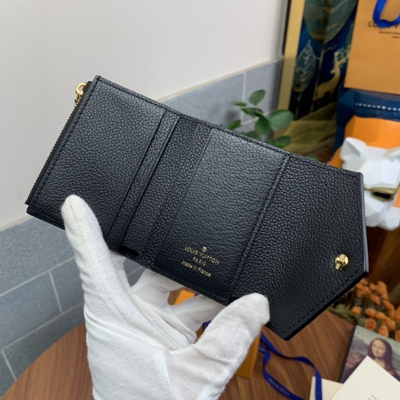 ZOé Wallet The Zoé wallet is made of soft Monogram Empreinte leather and is decorated with the classic Louis Vuitton Monogram embossing. It is easily folded into a small bag and has enough space to store coins, banknotes and credit cards