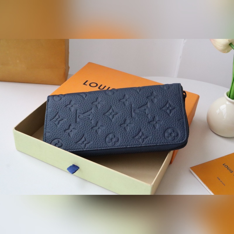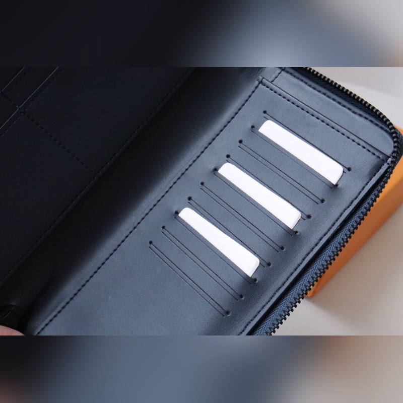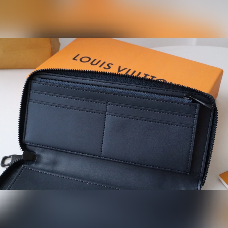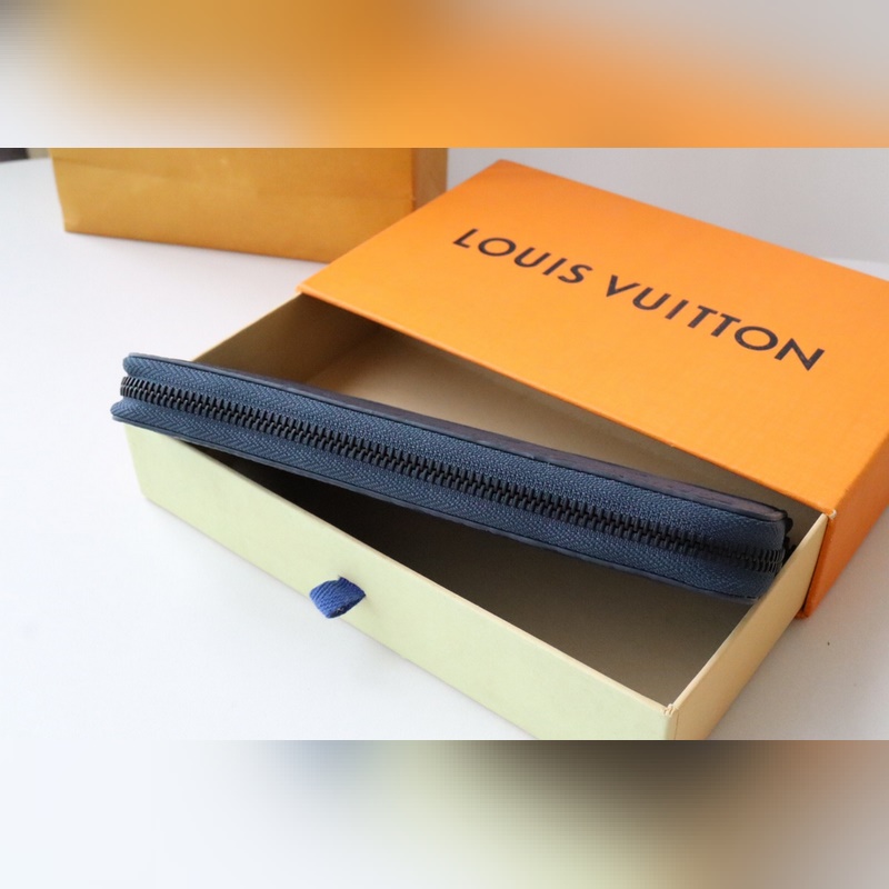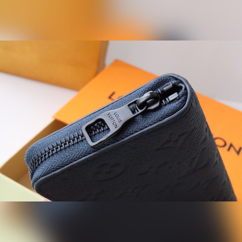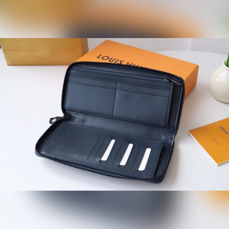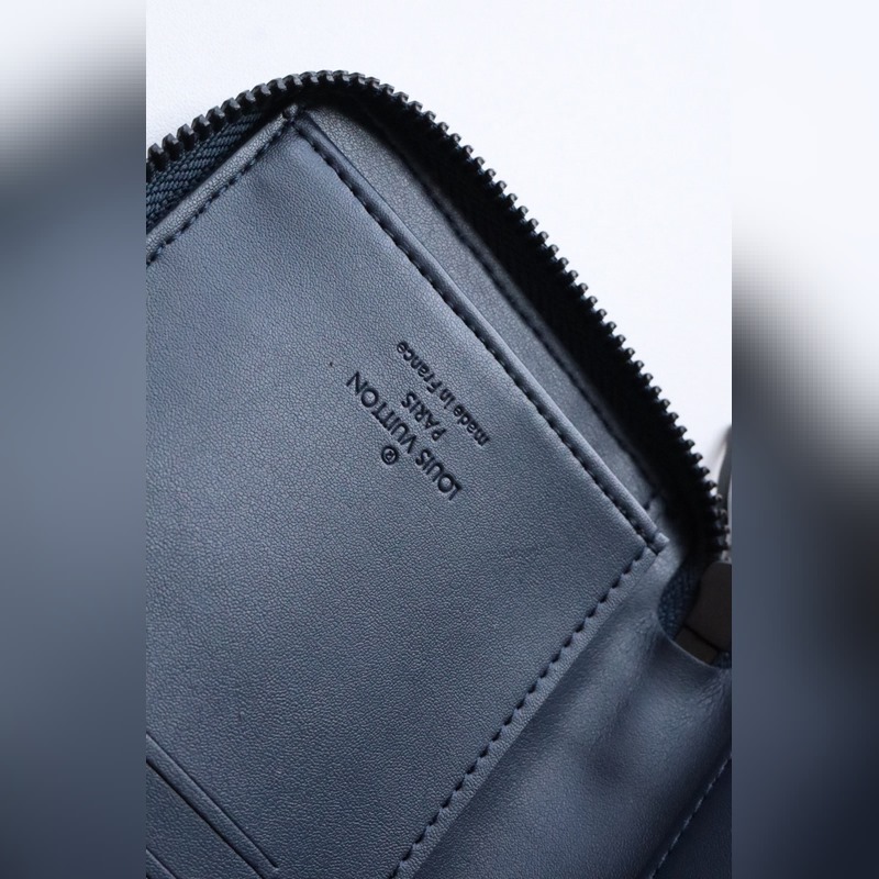 A compact wallet made from Monogram Eclipse Reverse canvas featuring a monochrome pattern in shades of grey. The canvas is combined with turquoise cowhide leather on the edges of the wallet to create a fresh and dynamic look.