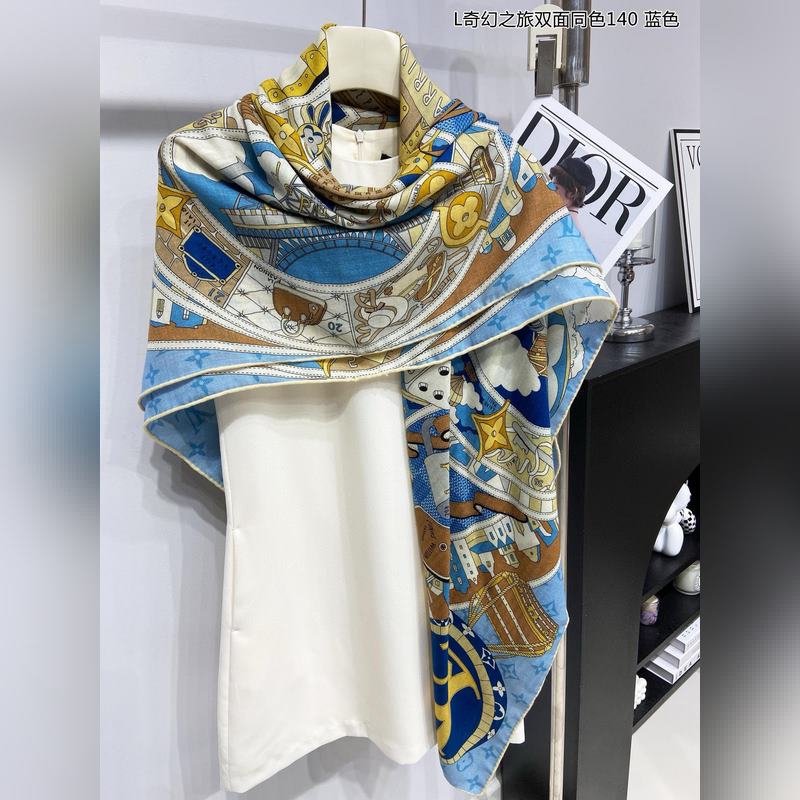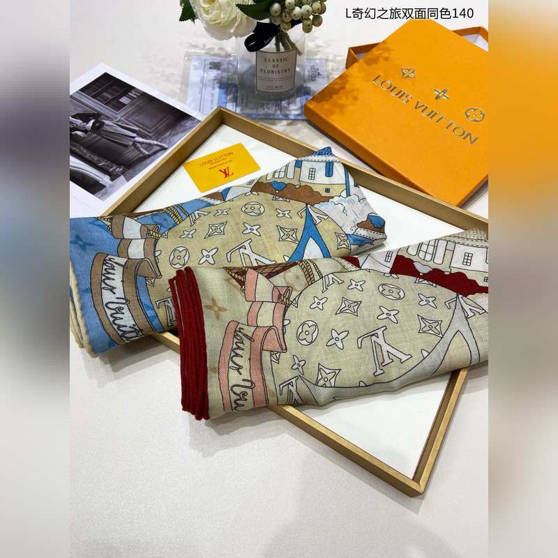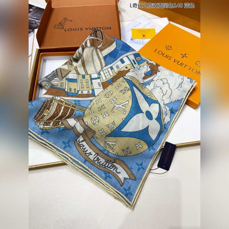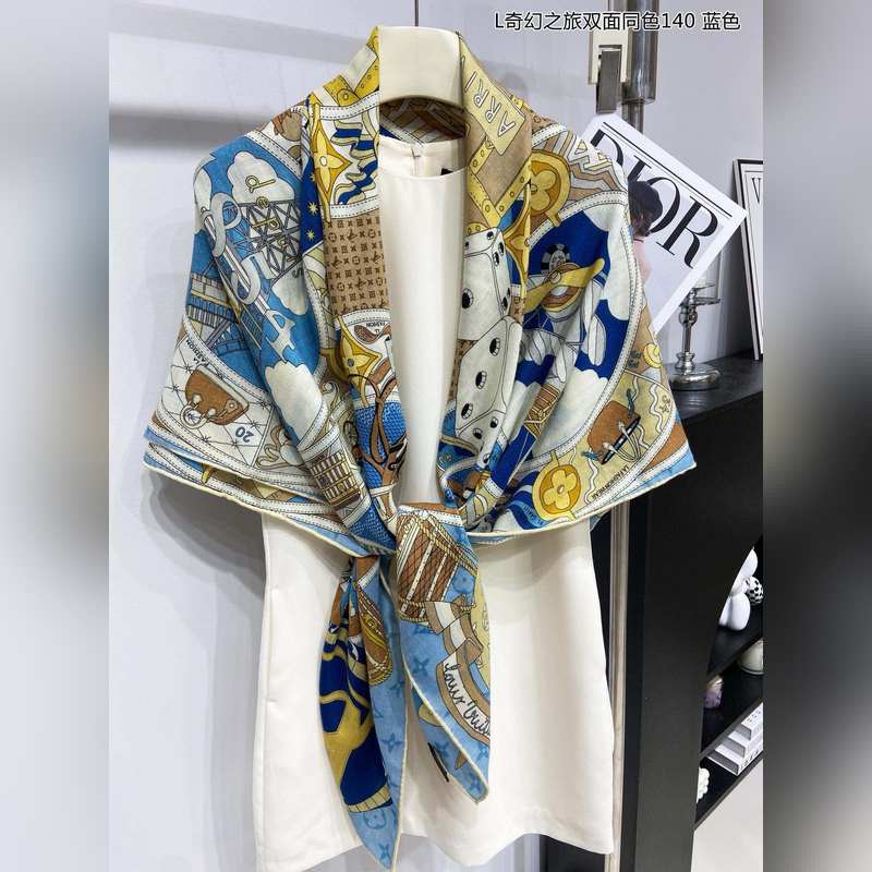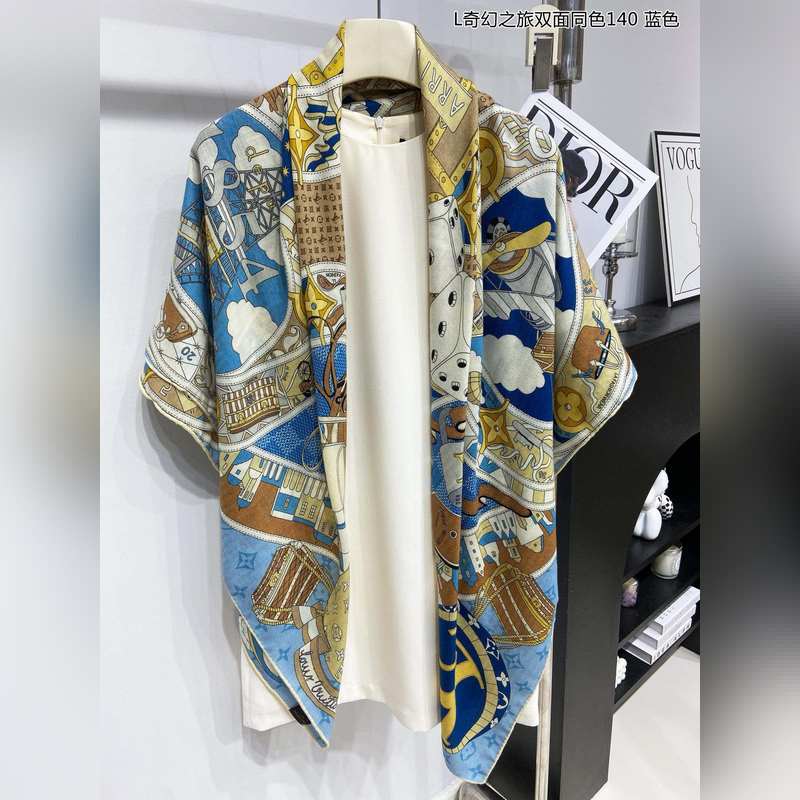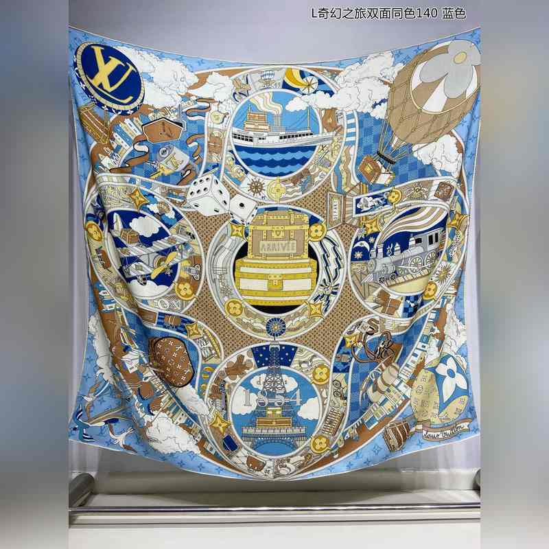 Cashmere square scarf. Really like it. L Fantasy Journey. Double-sided same color. 140. This Malles Merveilleuses cashmere square scarf interprets the inspiration of advertising posters in the late 19th century with an artistic design, paying tribute to the long history of Louis Vuitton. Various hard cases and travel stickers embellish the Monogram pattern background, highlighting the brand’s focus on exquisite details. The elegant configuration exudes exquisite charm. Highly recommended. Be quick. The price is really good. This size is not too big or too small and is very easy to match. The quality is super good. You will understand the high-end quality when you get it. The high-end details are what you see is what you get. A heavyweight offer. VIP customers must buy it. 140*140cm 100% cashmere square scarf