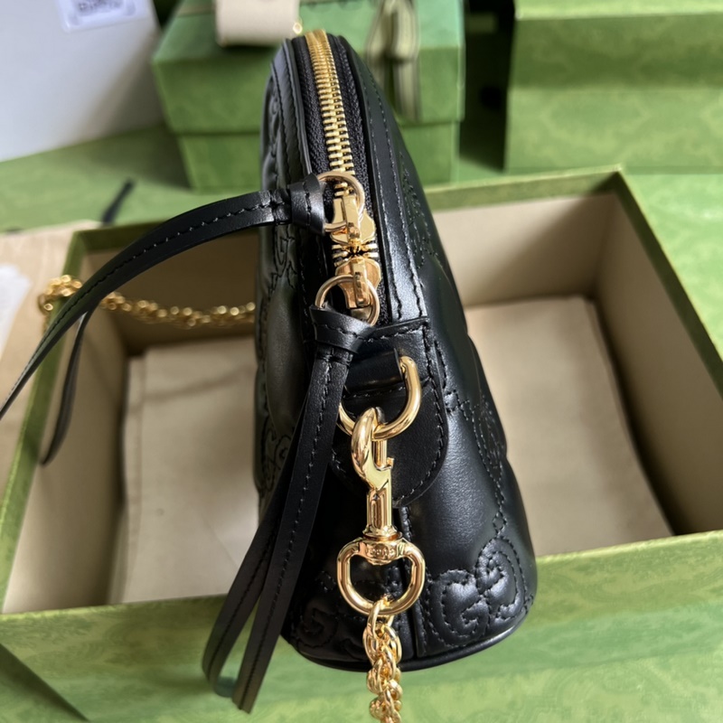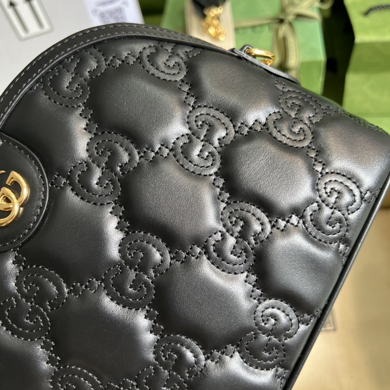 《With full set of counter green packaging》Original leather matelassé leather shoulder bag UM8HG 9500 appears at the forefront of the creative director’s design in a new and unique way every season. With an ultra-soft surface treatment, the iconic material is once again reimagined as part of the , with a textured geometric pattern. The design presents a contemporary approach to the 90s logo trend, which appears in the House’s latest collection. Here, it enriches the black round shoulder bag. Leather, gold hardware double G. This item comes with an additional leather shoulder strap.