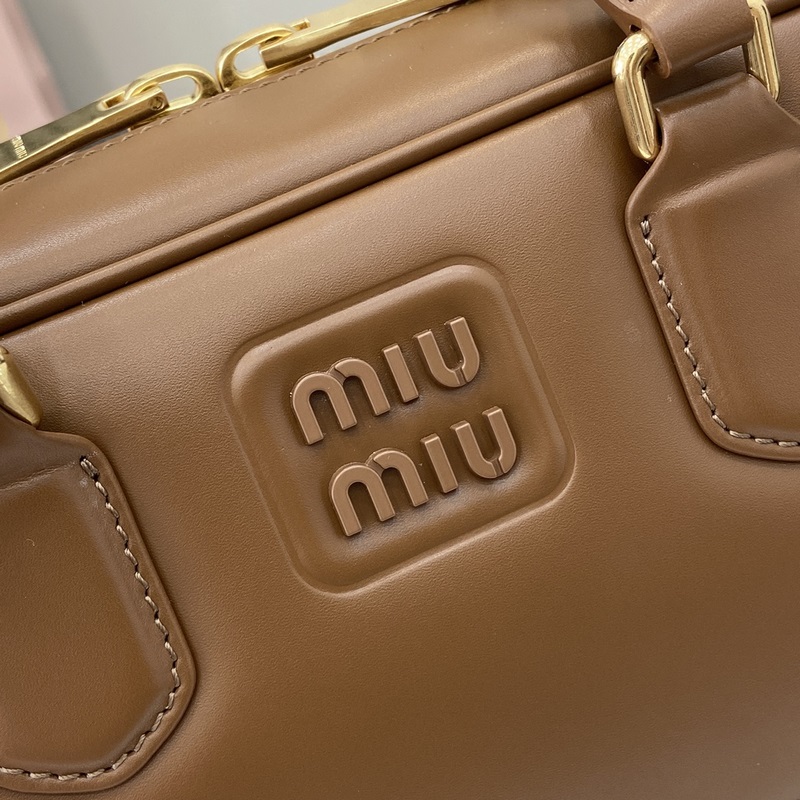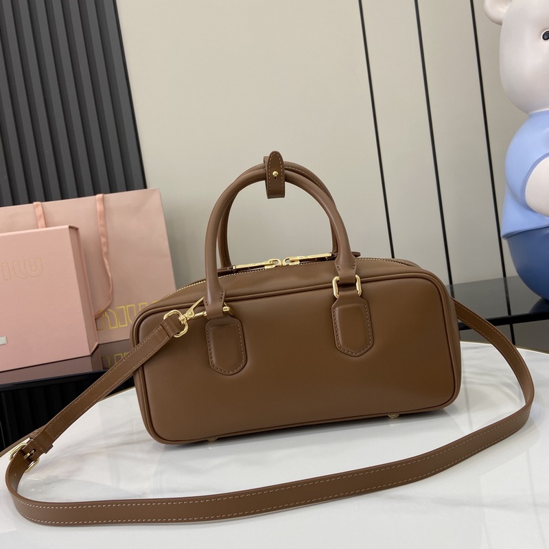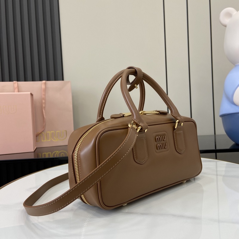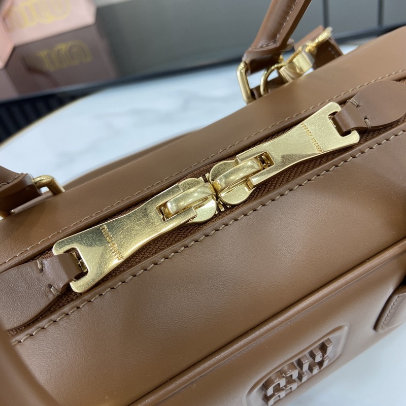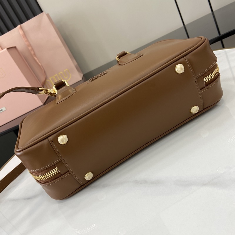 New miumiu Miu Miu Arcadie cowhide medium (27cm) bowling handbag/crossbody bag ~ Cognac cowhide