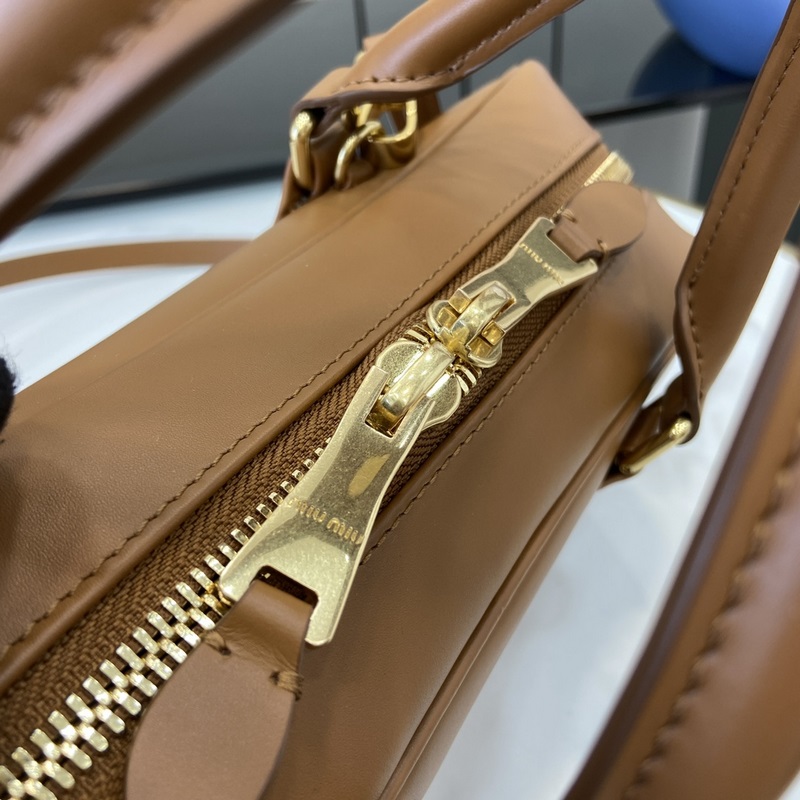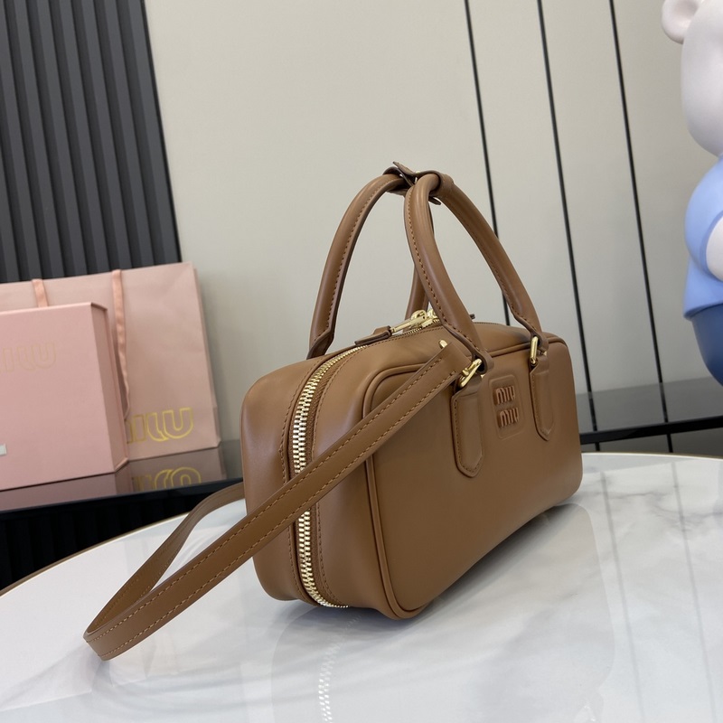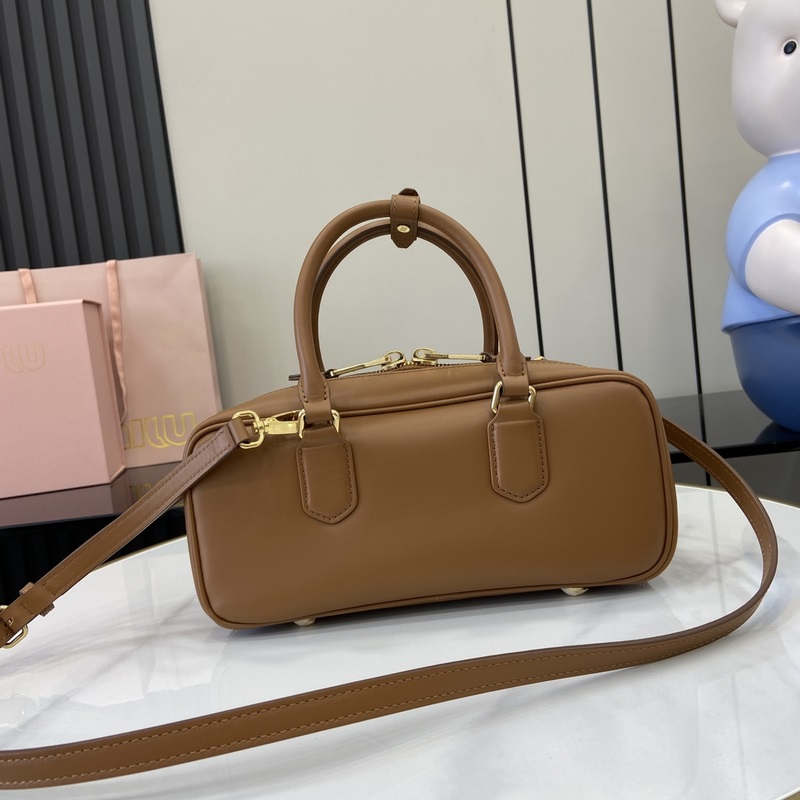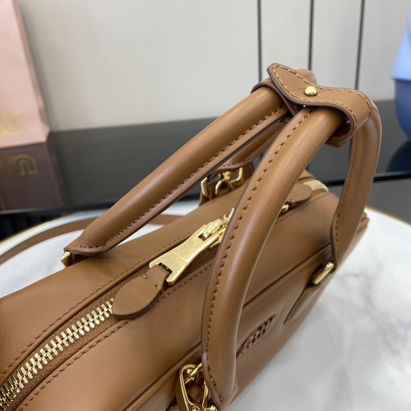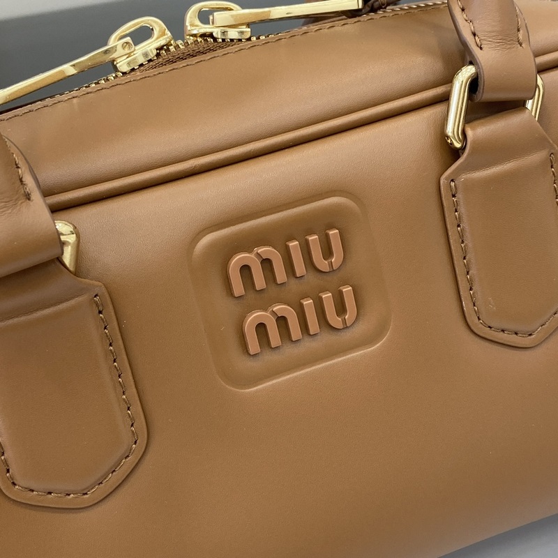 New miumiu Miu Miu Arcadie cowhide medium (27cm) bowling handbag/crossbody bag ~ Cognac cowhide