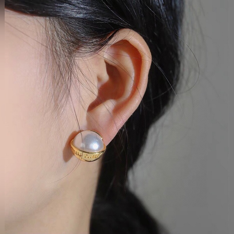 Miu Miu Letter Stud Earrings Original Material Face-shaping Design