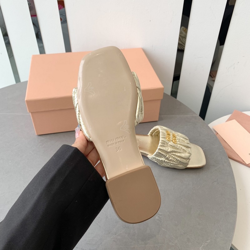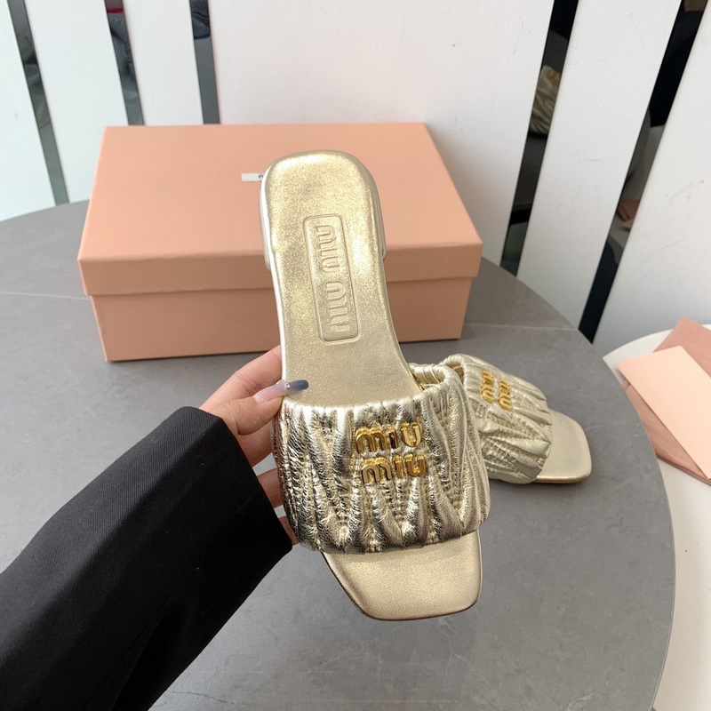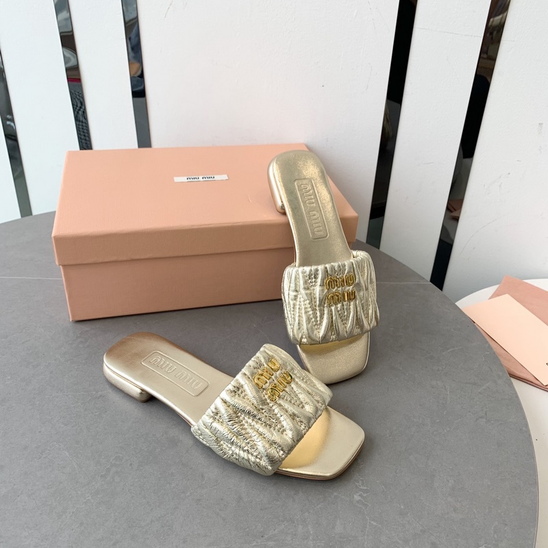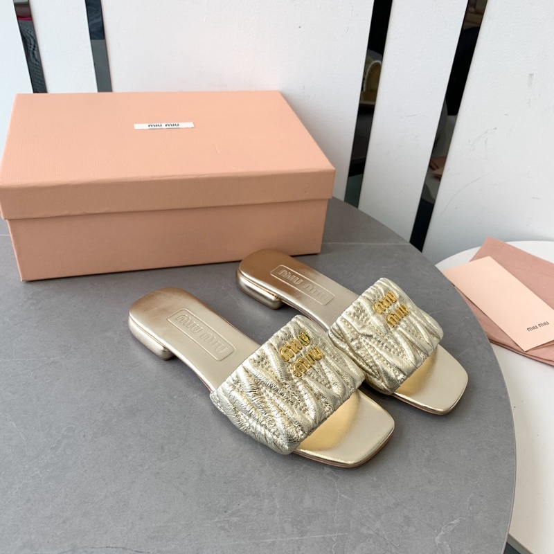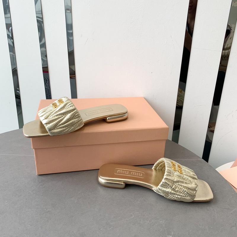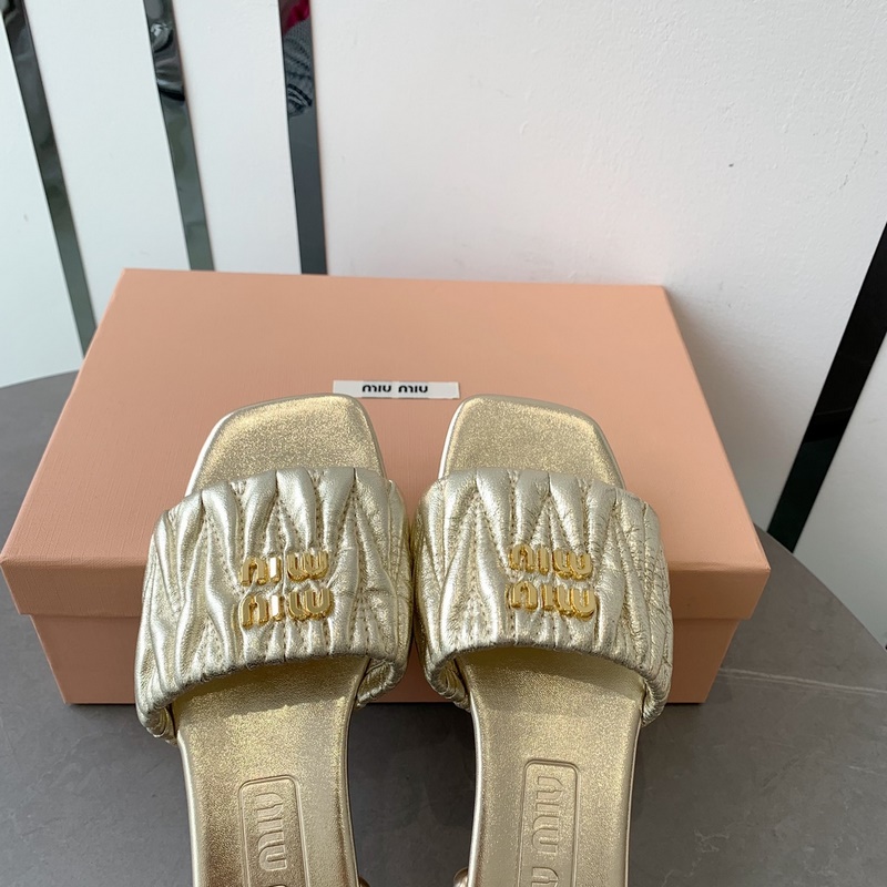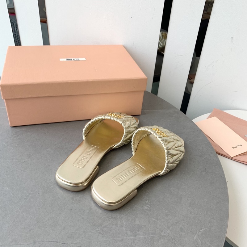 Miumi 2023 SS Flat Lambskin Sandals Premium Version