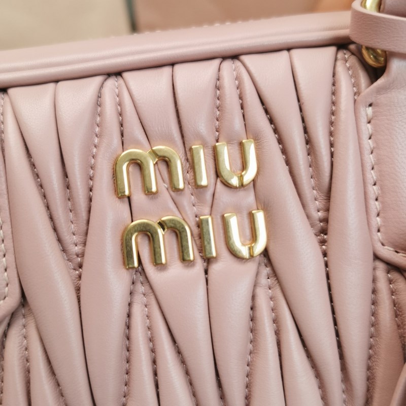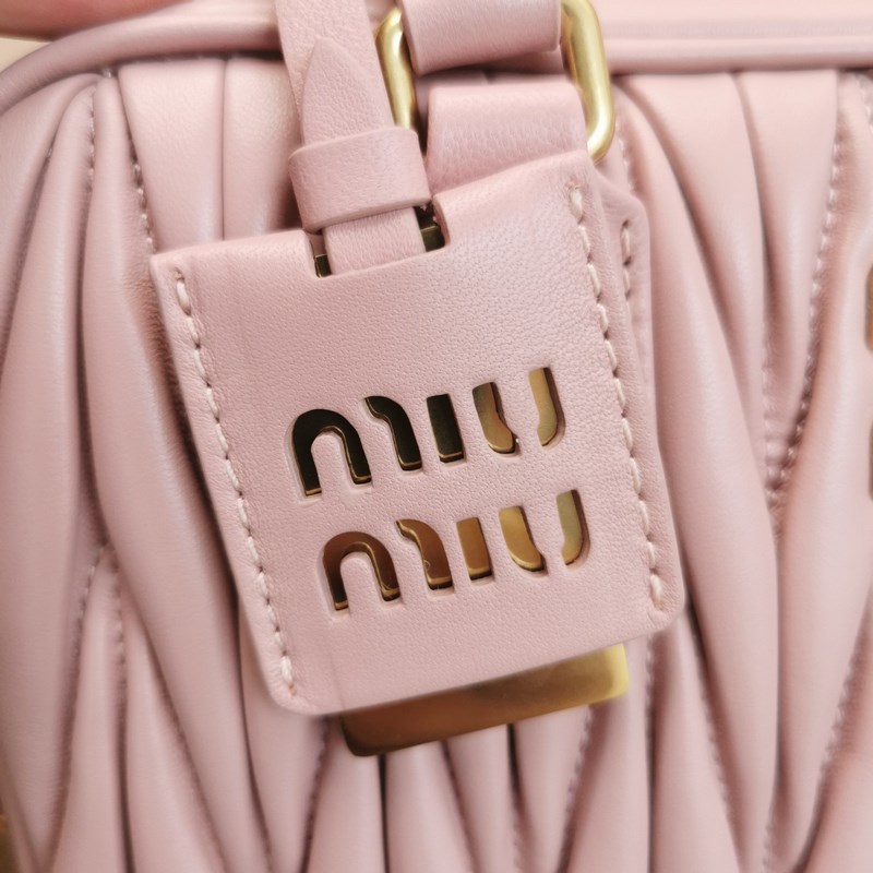 5BB124: MiuMiu’s new too pretty bowling handbag, made of imported lambskin with classic brand’s iconic Matelasse texture embroidery and retro matte hardware, retains the proper sense of playfulness, the overall shape of the bag is stiff and stylish, full of personality, can be sweet or salty, and has a large capacity. Almost every major fashion blogger has one, and it is as popular as the previous MiuWander. It comes in many colors and two sizes. The large size is: 24X16X7.5CM, with original packaging