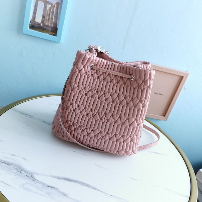 Miumiu Upgraded version, 9K glass stone crystal diamond chain, light pink model number: 5BE050 New crystal chain bucket bag
