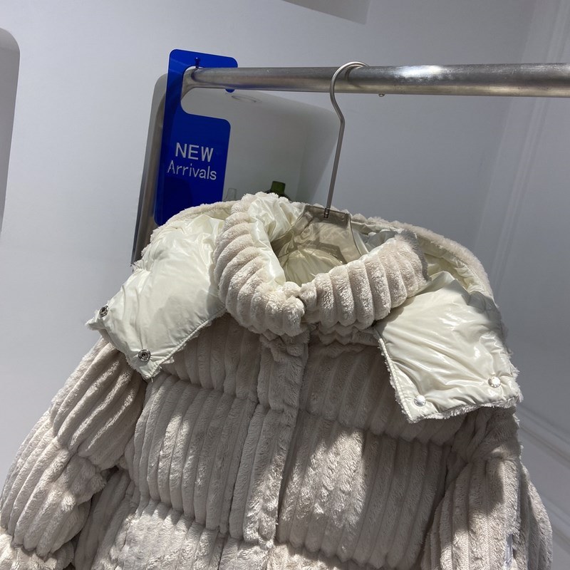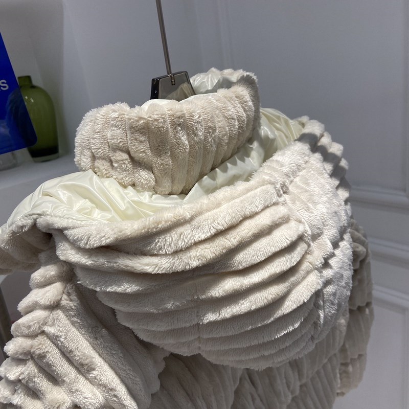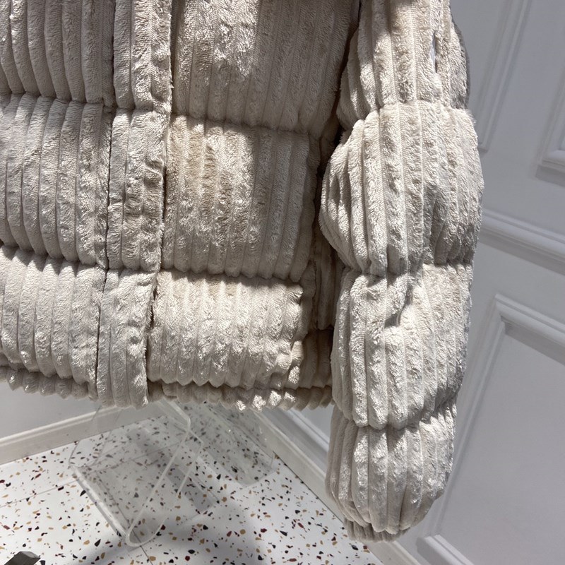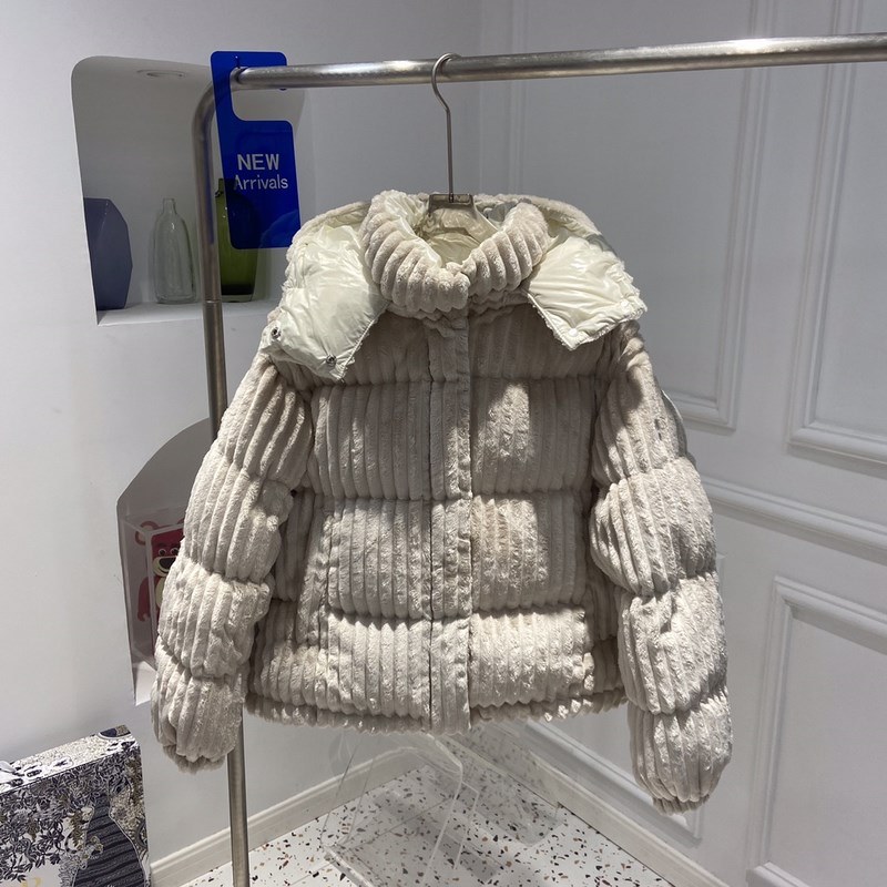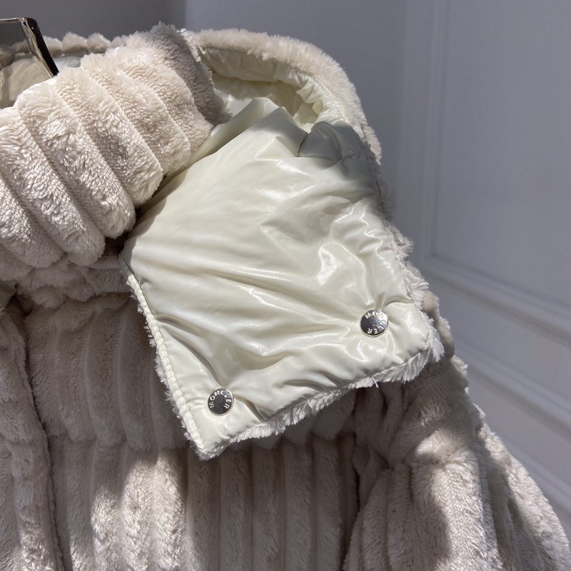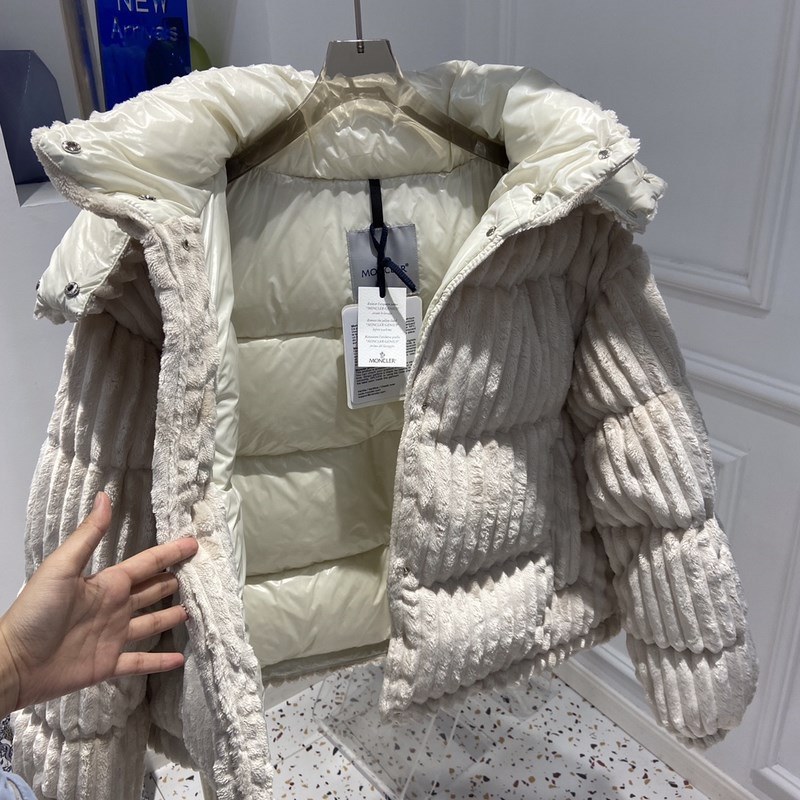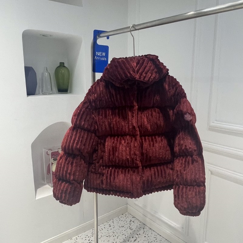 Moncler Corduroy Bread Short Hooded Down JacketColor: Off-White Burgundy Size: 0 1 2