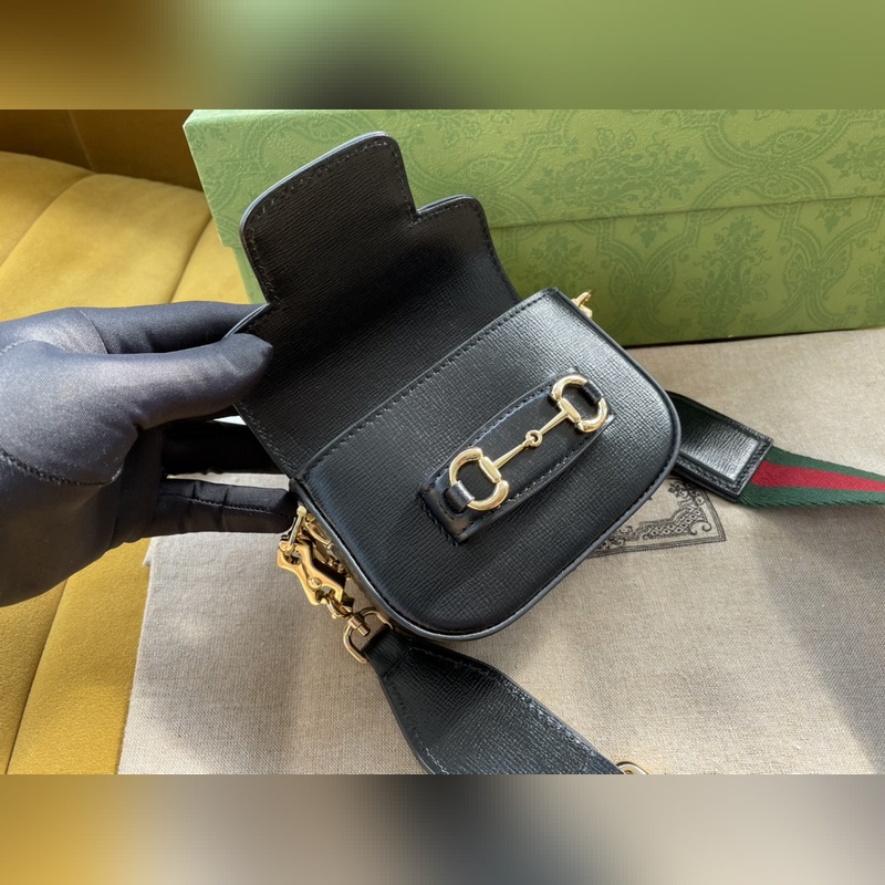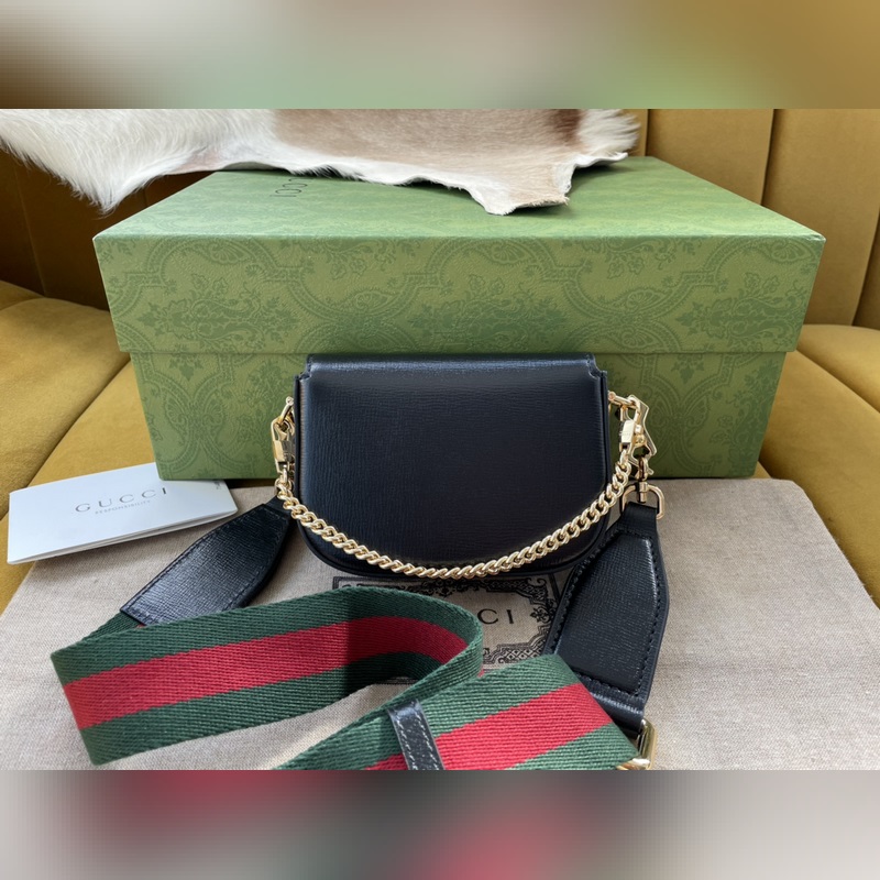 Original leather 1955 full leather series draws inspiration from the brand’s classic design. Model number: 699760. The modern essence is integrated into the early design details of more than 60 years ago, giving the classic element of the horsebit a new charm. This design pattern is inspired by the brand’s equestrian origin. It consists of two elements: double rings and long strips. It has become one of the brand’s highly recognizable iconic elements. This design is embellished with green and red webbing shoulder straps, showing a flexible and changeable style. Size: 12/9/4cm With original packaging