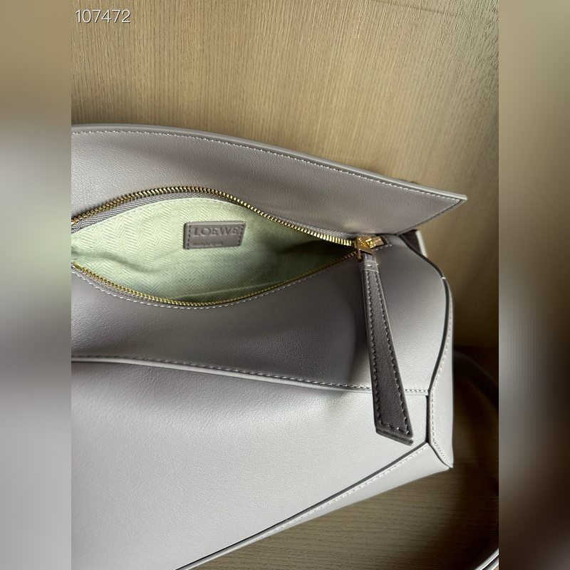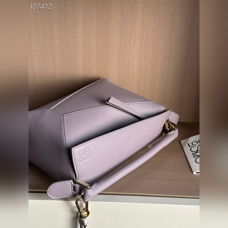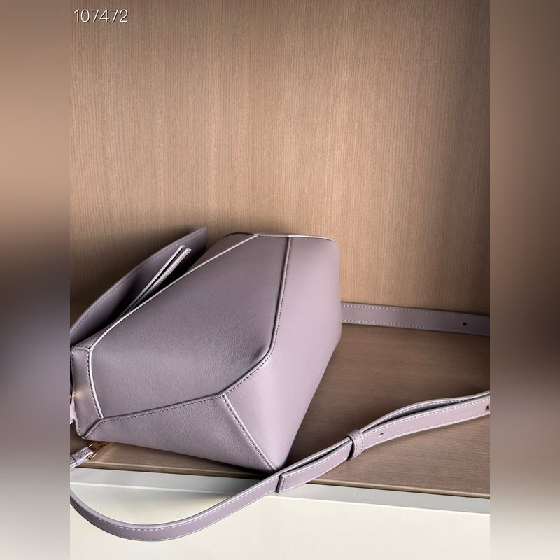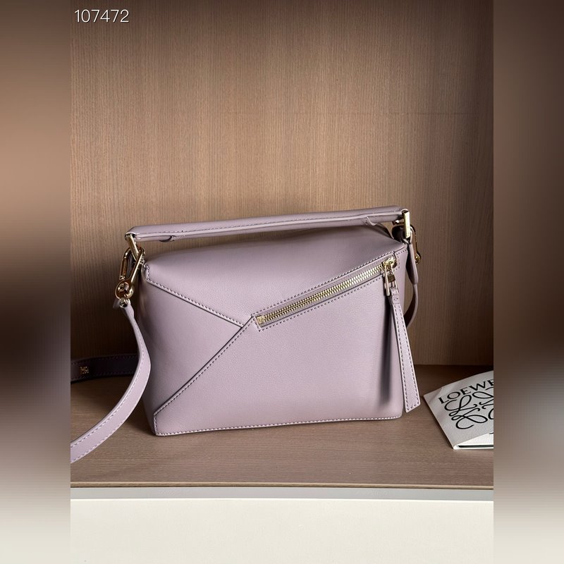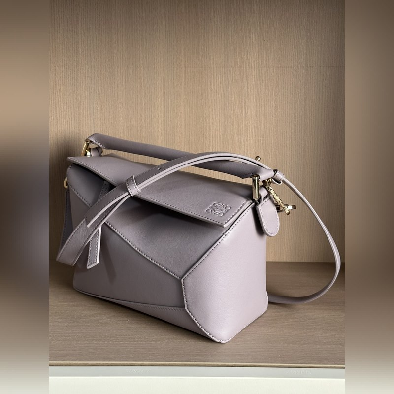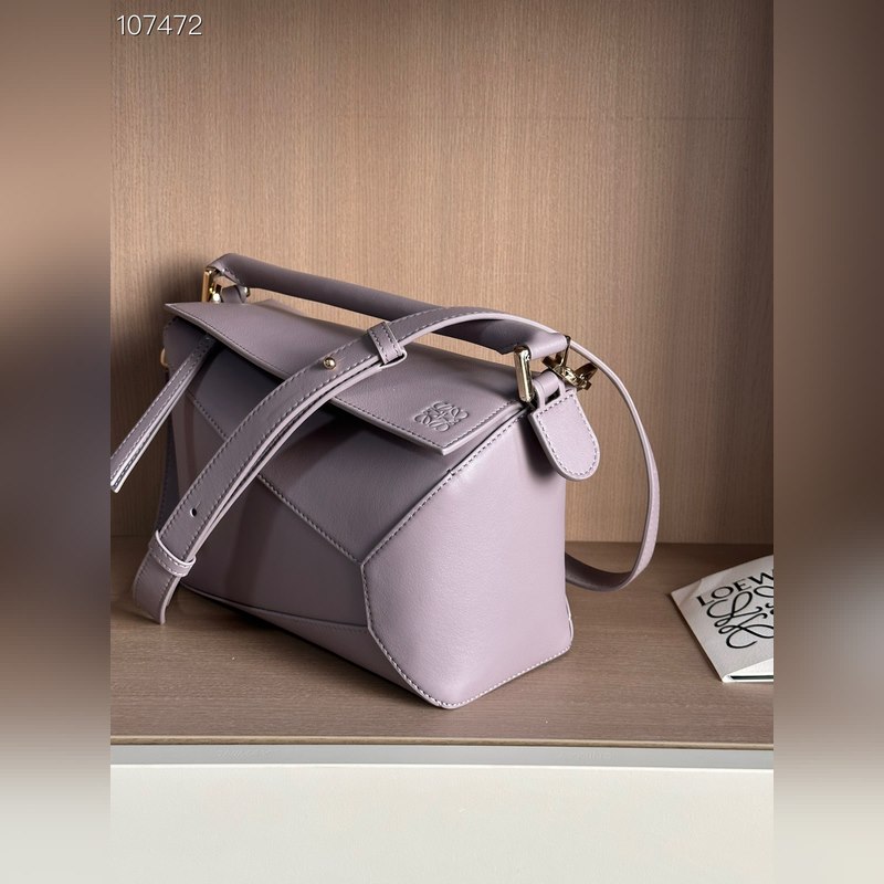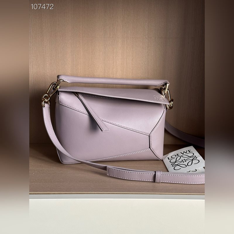 The Puzzle Bag is the first handbag from Creative Director Jonathan Anderson for LOEWE. The cuboid shape and precise cutting techniques create the Puzzle’s distinctive geometric lines. This small bag is crafted from classic calfskin leather with overlapping edges.