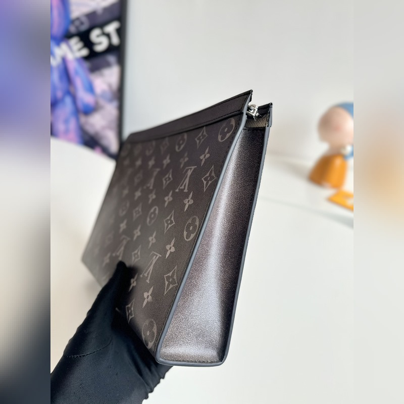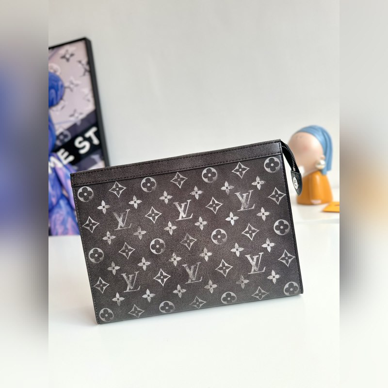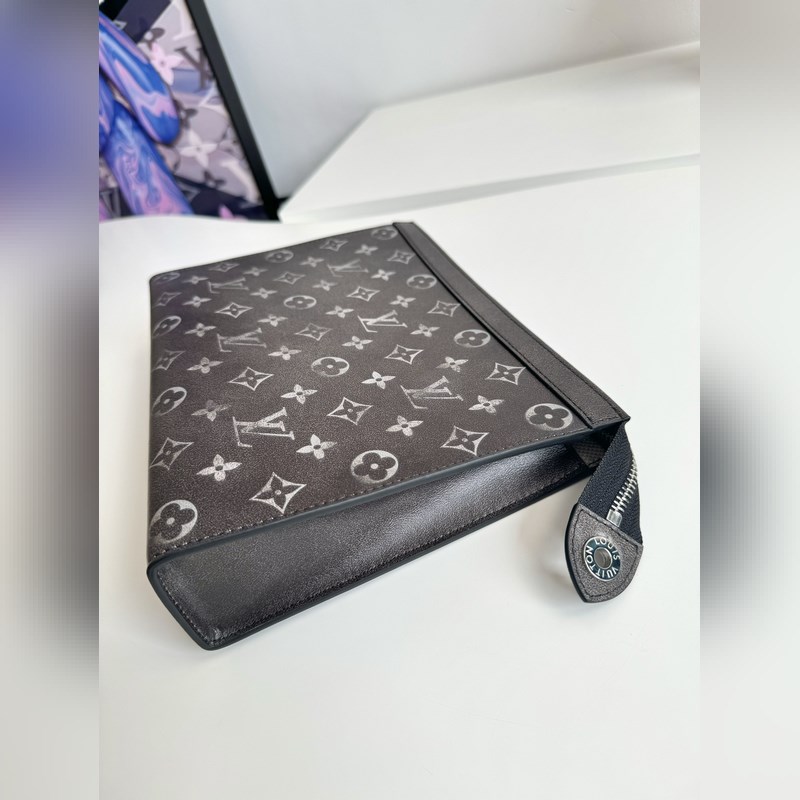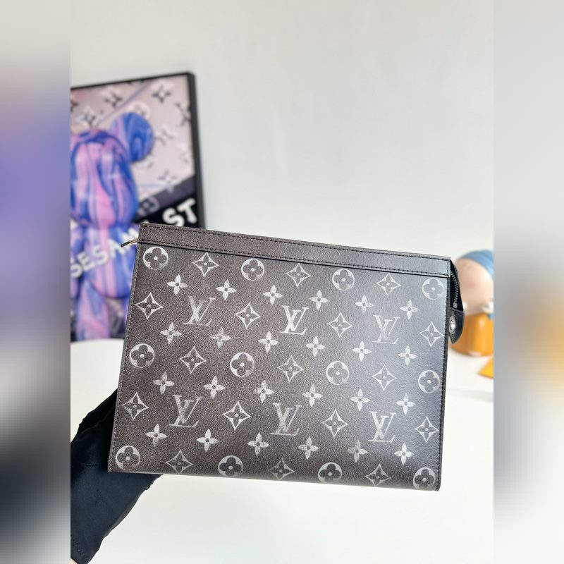 Exclusive real shot of the overseas original M11764. This Pochette Voyage clutch is made of Brushed Monogram leather, with a distressed Monogram pattern that interprets the lingering time. The deep cowhide trim meets the fabric lining, and the zipper opens the card compartment and inner patch pocket, making it easy to carry your daily needs. Size: 27×21×6cm