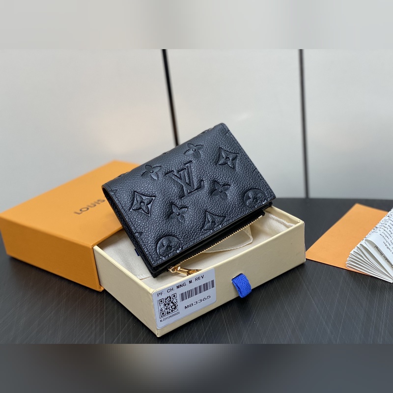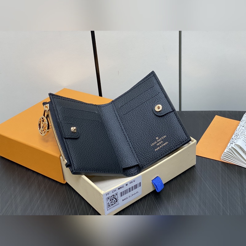 Original boutique M83365 black All leather wallet series M83587 light blue Portefeuil Lisa wallet The exquisite embossed Monogram pattern stands out, reinterpreted in pink Monogram Unplant leather, this season’s exclusive “Portefeuille Lisa”. A small wallet that can be neatly put into bags and pockets, with multiple pockets and card slots, and a zippered coin pocket decorated with LV ring handles. Dimensions: 9 x 11.5 x 1.5 cm