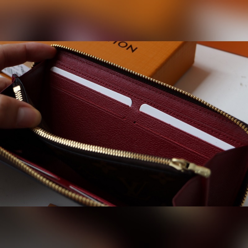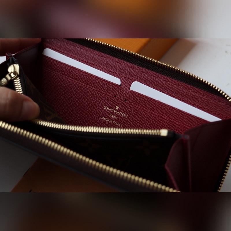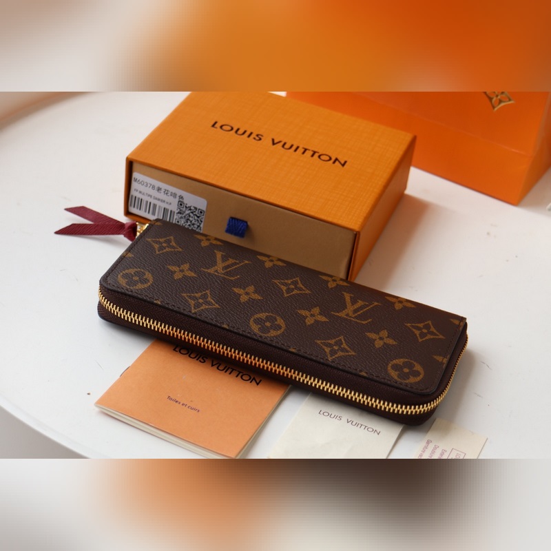 Exclusive real shot of Clemence wallet, small and compact but full of capacity, made of exquisite and durable Monogram canvas material. Bright lining and leather zipper, showing the playful charm of women. Size: 19.5×9×1.5cm