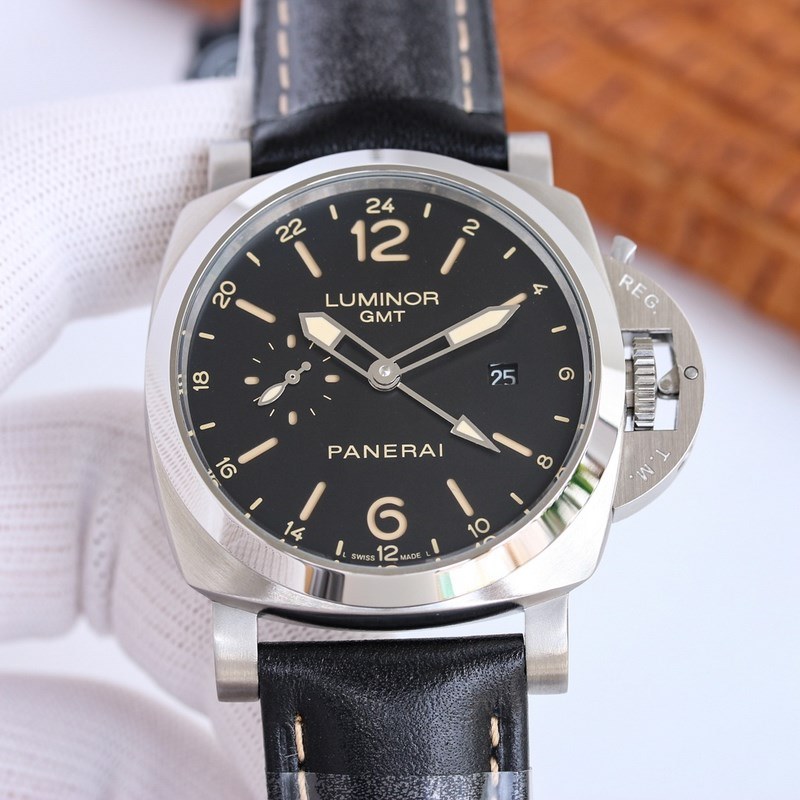 Case size 44mm AISI 316L frosted stainless steel Unique quick-release design Non-screw structure Combined with an ingenious dial and imported Italian calfskin strap, it shows the characteristics of a very stylish watch and has become one of the ideal watches in the minds of watch enthusiasts. The crown bridge is another unique feature of the brand after the Radiomir pillow-shaped case. It is highly recognizable and you can tell it is a Panerai watch at first glance. On the black dial, the Arabic numerals and the central hour, minute, second time zone hands and the small seconds dial at the 9 o’clock mark are all covered with luminous parts, showing an attractive green light in a darker environment. It is intuitive and clear, beautiful and generous, and very convenient. Movement P9001, all parts are carefully decorated by watchmakers, and the precision density reaches the observatory level