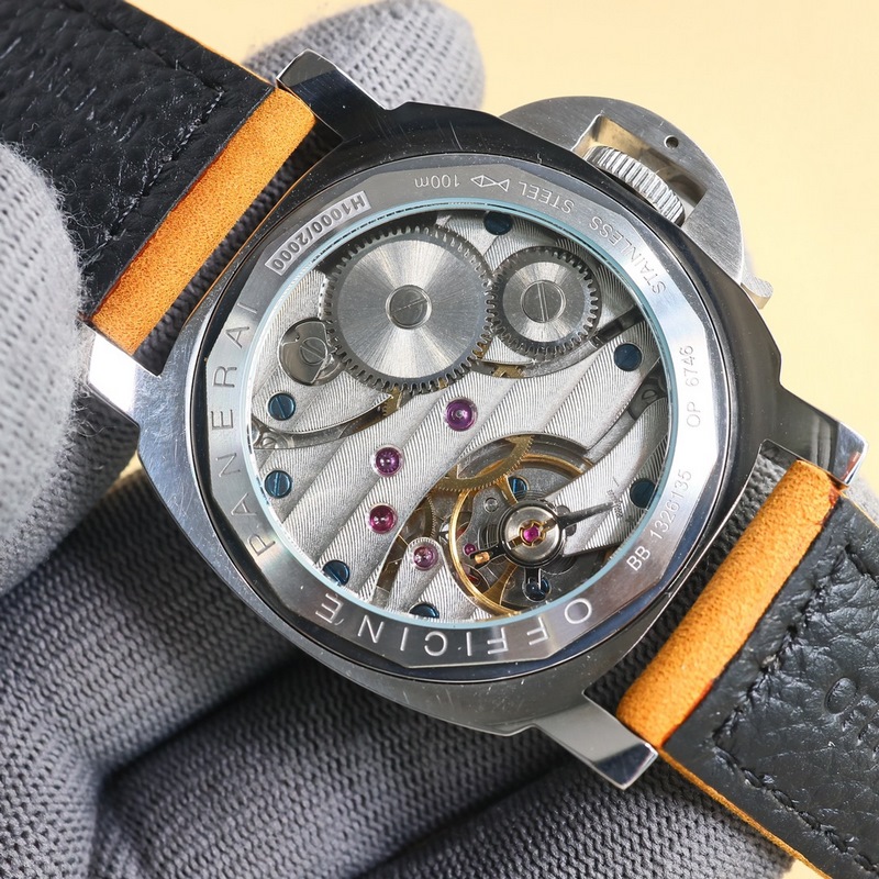 Panerai Model PAM01157 Brand Panerai series OR Movement model Seagull 2555 Movement type Automatic mechanical Shock absorber Incabloc shock absorber Case diameter 44 mm Case thickness 16.2 mm Dial color Black Clasp type Trapezoidal clasp 12-sided screw-in DLC coating Sandblasted titanium Case back, engraved “Case material Laser sintered titanium Dial material Black gradient dial, sandwich structure; Arabic numerals and time markers coated with white Super-LumiNova TM luminous coating, green luminous display Strap material Recycled PET resin fabric with white stitching