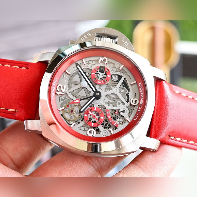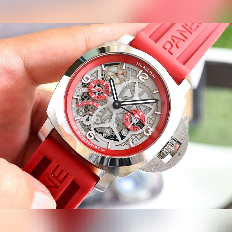 The latest V7 version of Panerai SUBMERSIBLE BMG-TECH ─ 47mm Submersible series metal glass watch is equipped with an imported 2555 fully automatic mechanical movement made of Panerai’s new material BMG-TECH, which has super high toughness and scratch resistance. In addition, the bezel is made of Carbotech material, which has an irregular matte black appearance. Different cutting methods will produce different appearances, and each watch is unique. The black dial inherits the characteristics of the previous series. The round scale and hollow hands are highly recognizable and covered with Suer-LumiNova super luminous coating to ensure that the time information can be clearly read in dark environments. There is a date display window at 3 o’clock and a small second dial at 9 o’clock.