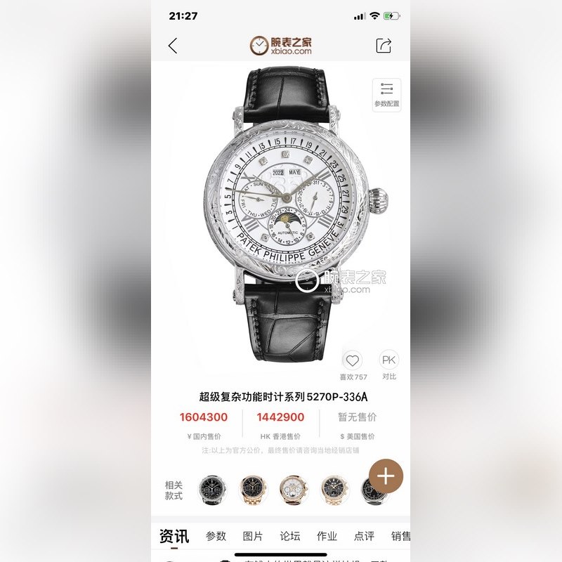 Patek Philippe 5270P-337A Super-Complex Function Timepiece Watch Diameter 42mm