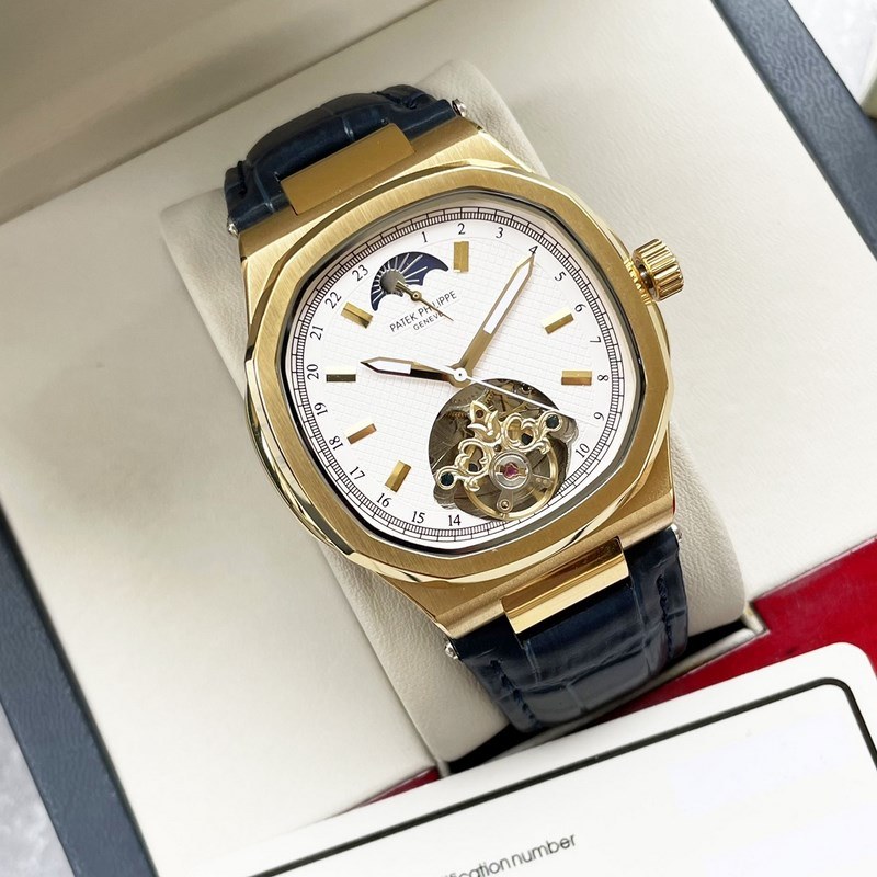 Patek Philippe men’s watch with large flywheel and moon phase design